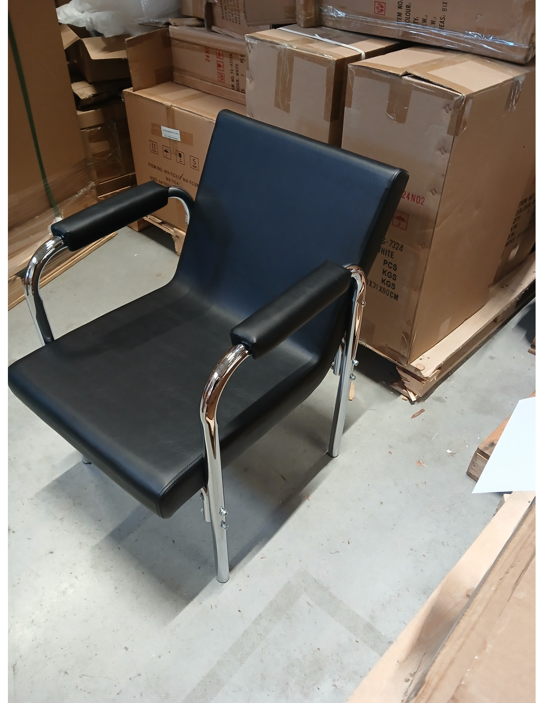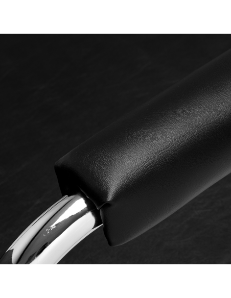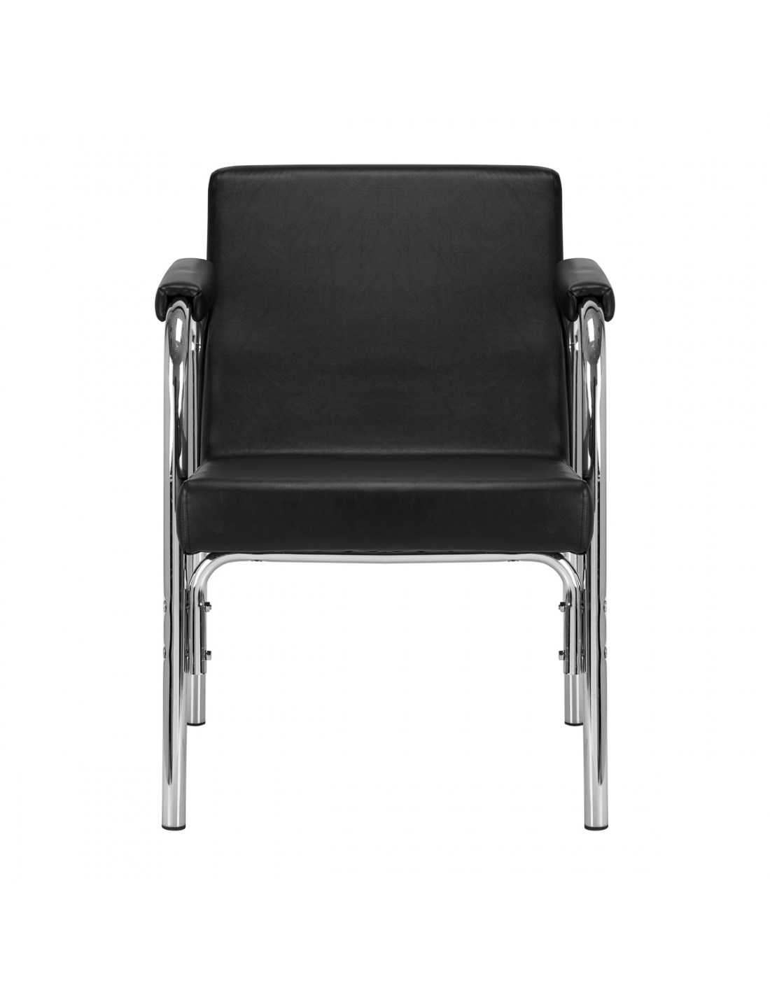 Opływowy profil nadaje meblowi nowoczesny wygląd, a eleganckie elementy w odcieniach chromu podkreślają charakter. Przyjemne w dotyku obicie z wysokiej jakości skóry syntetycznej w odcieniach czerni oraz trwałej pianki, zapewniając wysoki komfort użytkowania. Wytrzymałe materiały gwarantują długotrwałą użyteczność fotela. Stosunkowo niewielka waga mebla sprawia, że łatwo go przestawić, co jest szczególnie przydatne podczas intensywnego dnia pracy w salonie fryzjerskim. Odpowiednie wyprofilowanie sprawia, że fotel spełni wymagania nawet najbardziej wymagających klientów.