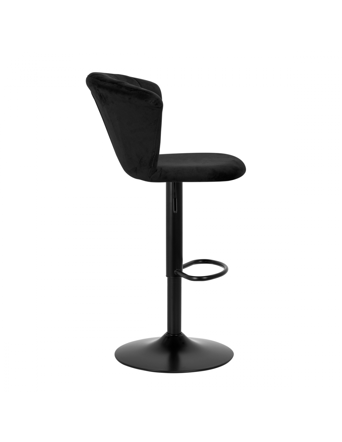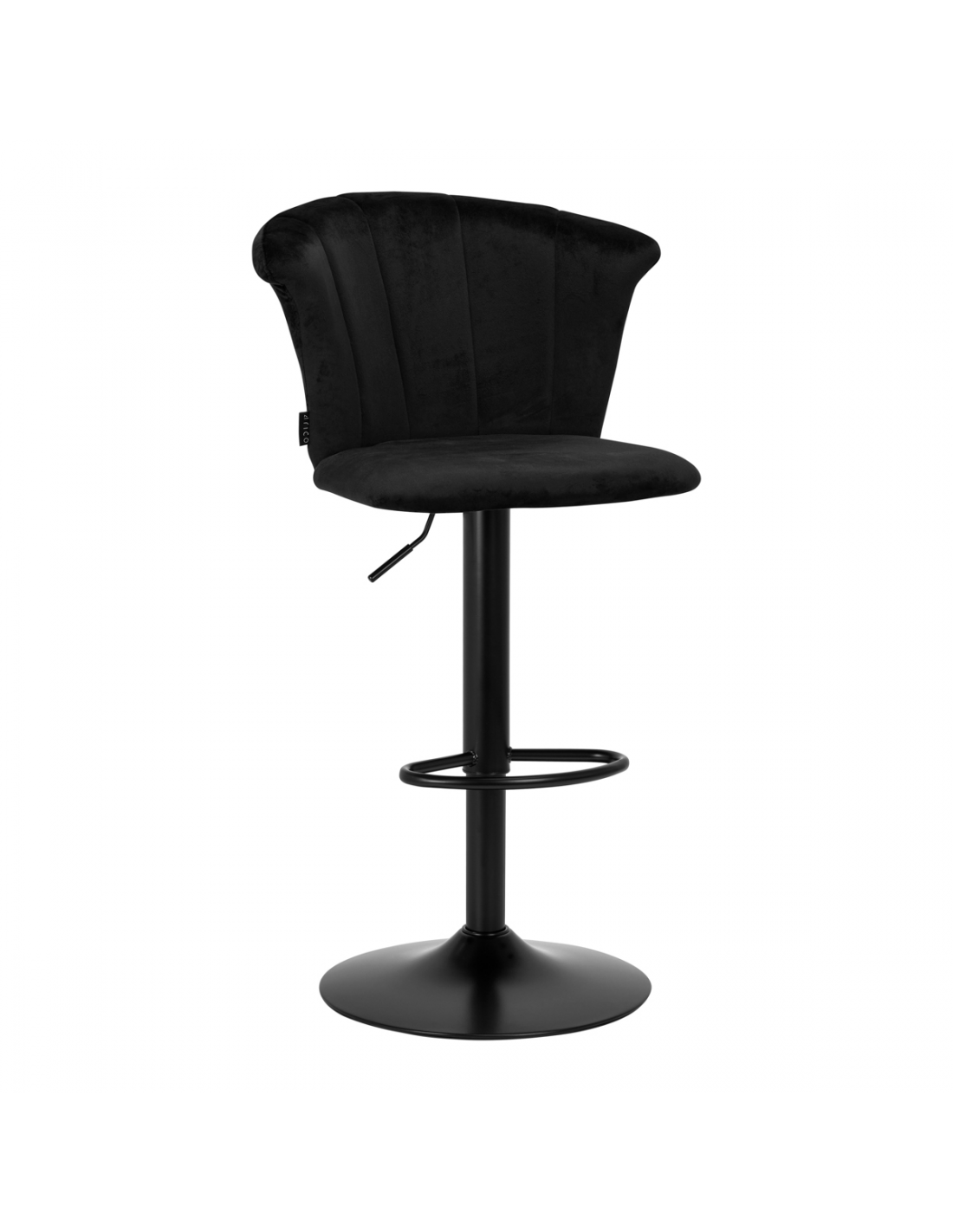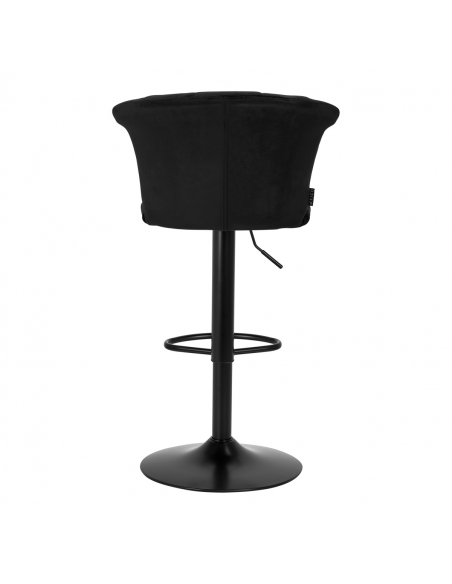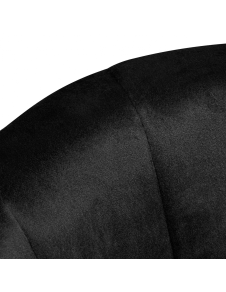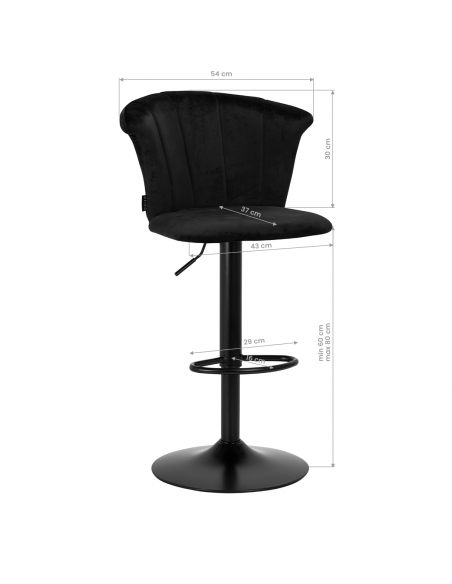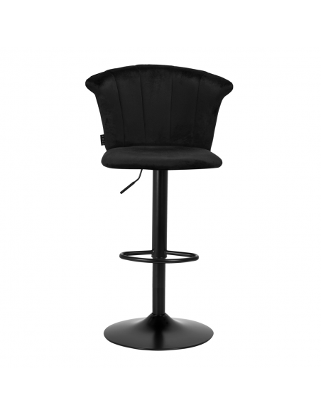 Przyjemne w dotyku, welwetowe obicie w odcieniach czerni nadaje hokerowi ekskluzywnego charakteru, a estetyczne przeszycia na oparciu, imitujące kształt muszli, podkreślają unikatowy wygląd mebla. Minimalistyczne wykończenie sprawia, że mebel świetnie wpasuje się w każde wnętrze. Matowo wykończony stelaż w odcieniach czerni dodaje elegancji i prestiżu, idealnie komponując się z aksamitem.