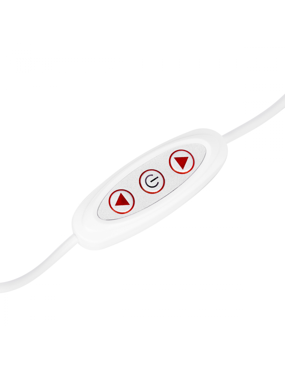 Natężenie można płynnie dostosowywać przy użyciu pilota umieszczonego na przewodzie zasilającym. Regulacja pozwala zadbać o dokładne oświetlenie miejsca zabiegowego w każdym momencie. Daje to ogromne możliwości dopasowania oświetlenia do indywidualnych potrzeb oraz wykonywanych w danym momencie usług. Tym samym poprawia efektywność i dokładność pracy, nie wzmagając przy tym przemęczenia wzroku.