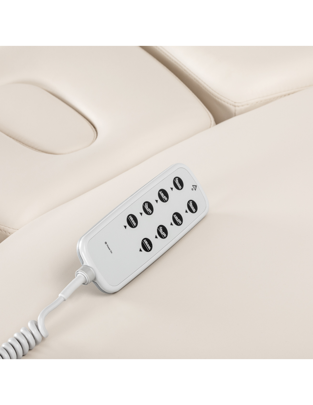 Intuicyjny pilot umożliwia płynną regulację w trzech płaszczyznach – wysokości, oparcia oraz podnóżka. Regulacja wysokości w zakresie 65-90 cm pozwala dopasować ustawienie do wzrostu specjalisty i rodzaju zabiegu. Szeroki zakres regulacji ułatwia zachowanie ergonomicznej pozycji pracy – niezależnie od wzrostu specjalisty czy specyfiki procedury. Możliwość jednoczesnej regulacji oparcia i podnóżka za pomocą jednego przycisku pozwala szybko ustawić pozycję siedzącą, półleżącą lub leżącą – bez konieczności przerywania zabiegu. Płynna zmiana ustawień wspiera ergonomię pracy oraz zwiększa komfort klienta na każdym etapie procedury.