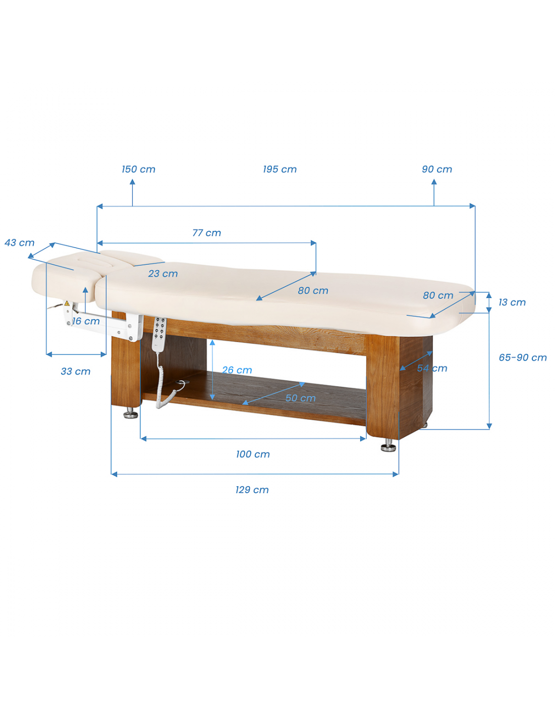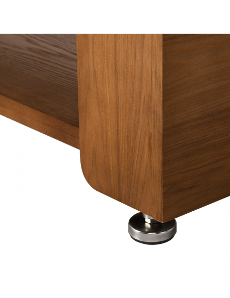 Profilowana powierzchnia leżanki sprzyja naturalnemu, wygodnemu ułożeniu ciała, zapewniając stabilne i komfortowe podparcie. Odpowiednia szerokość i sprężysty materac zapewniają wygodę nawet podczas długich zabiegów pielęgnacyjnych i masaży. Większy komfort oznacza lepsze doświadczenie zabiegowe i wyższy standard usług w gabinecie. Otwarta półka z wbudowaną przelotką na przewody ułatwia organizację akcesoriów i kosmetyków, pozwalając zachować porządek na stanowisku pracy.