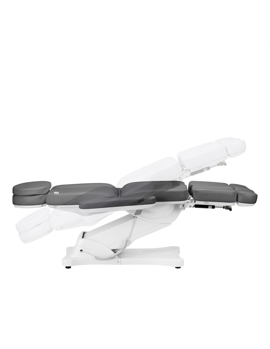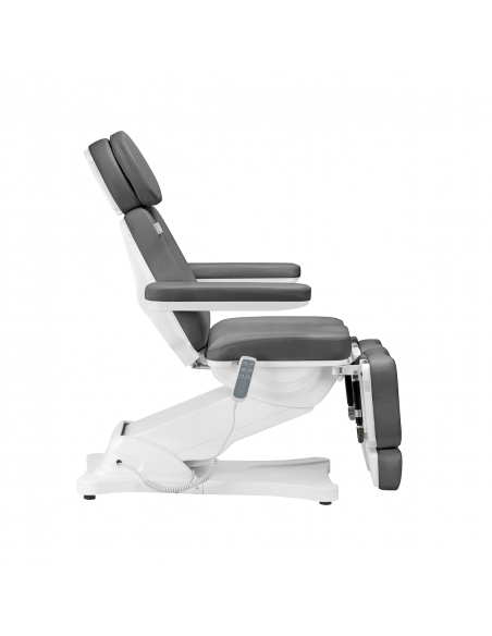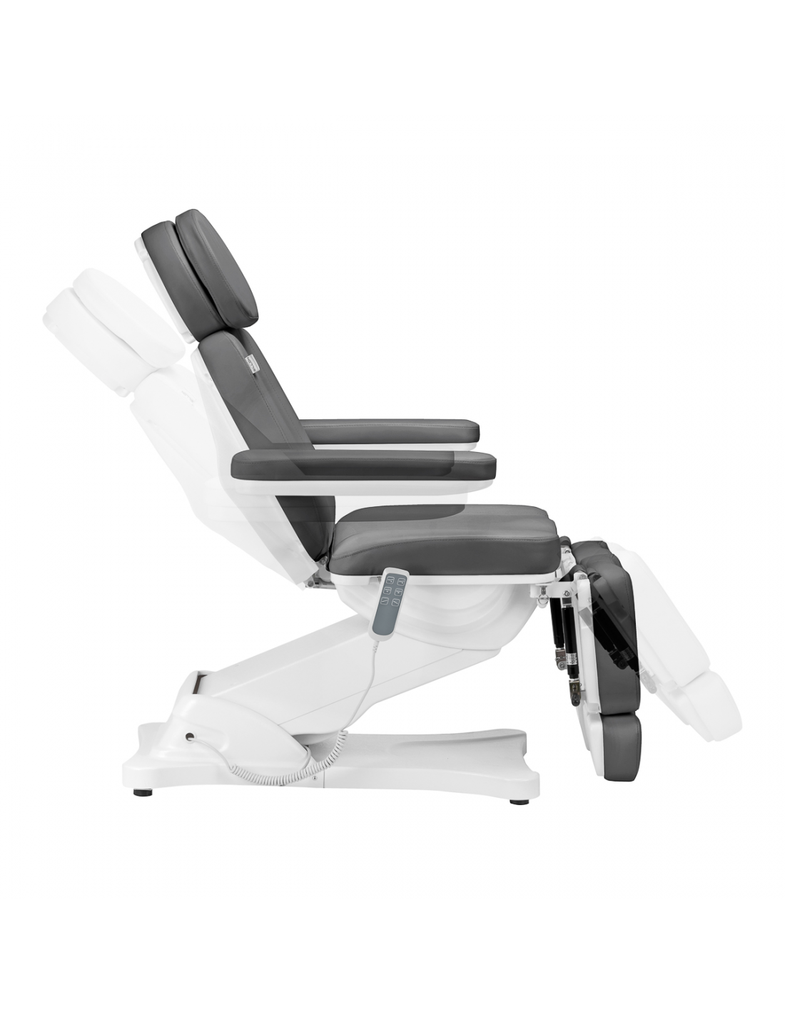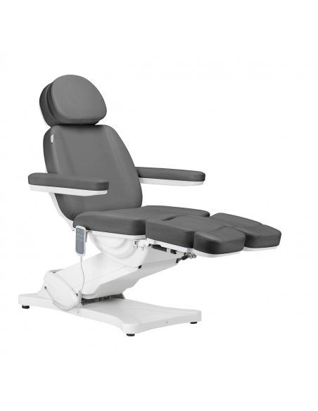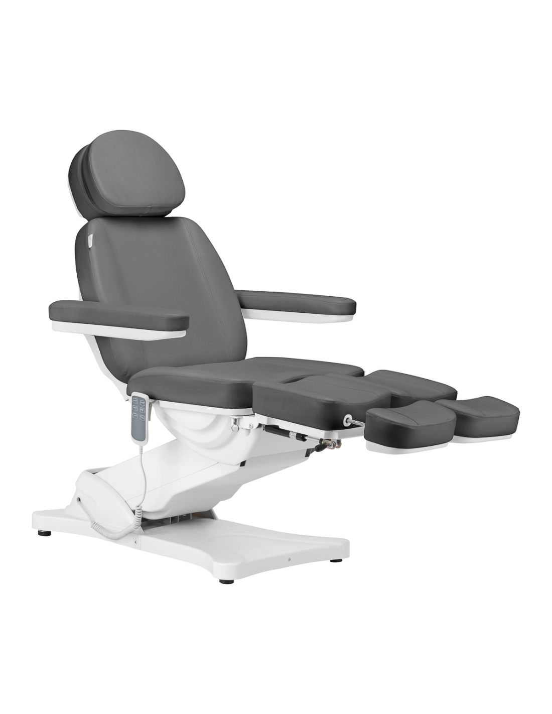 Fotel doskonale przystosowany jest do wykonywania zabiegów podologicznych – dzielony podnóżek ułatwia komfortowe przeprowadzenie usług, pozwalając na niezależne układanie pozycji nóg. Kąty, pod jakimi znajdują się jego części, regulowane są manualnie. Specjalnie zaprojektowany mechanizm pozwala na odchylanie podnóżków również na boki. Wysunięcie podnóżka również można dostosowywać, co zapewni lepsze podparcie wyższym użytkownikom. Wszystkie te cechy zapewniają wysoki komfort korzystania.