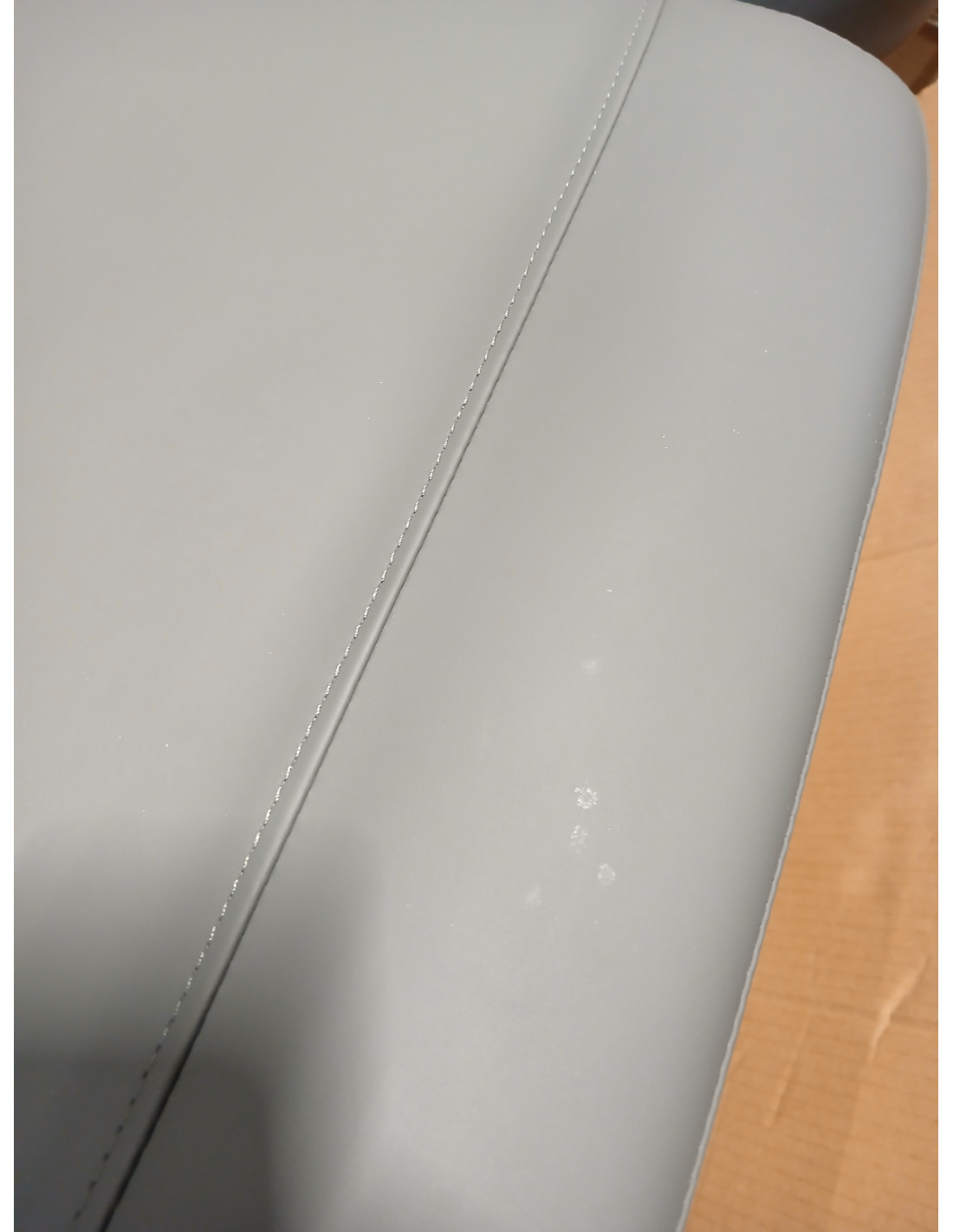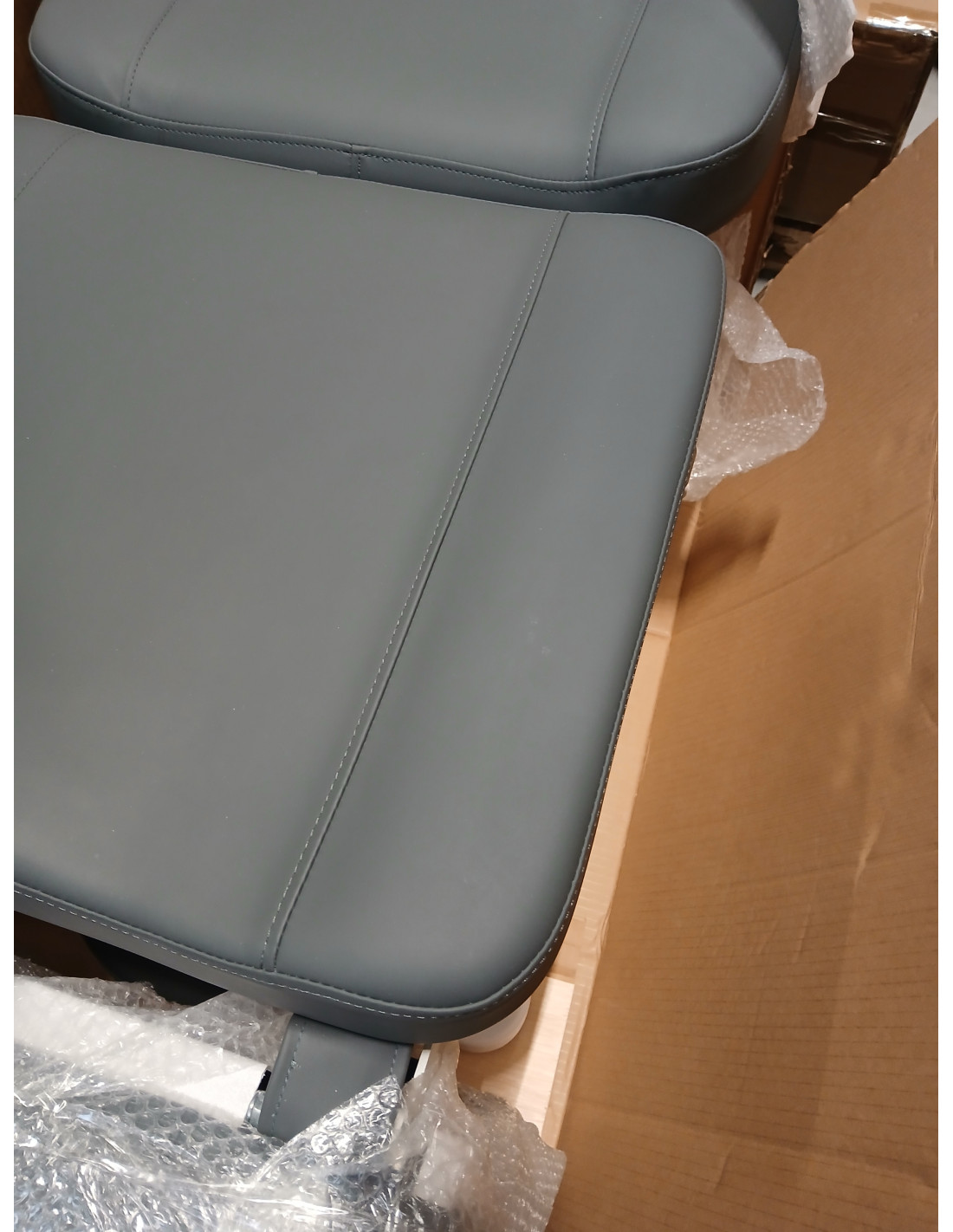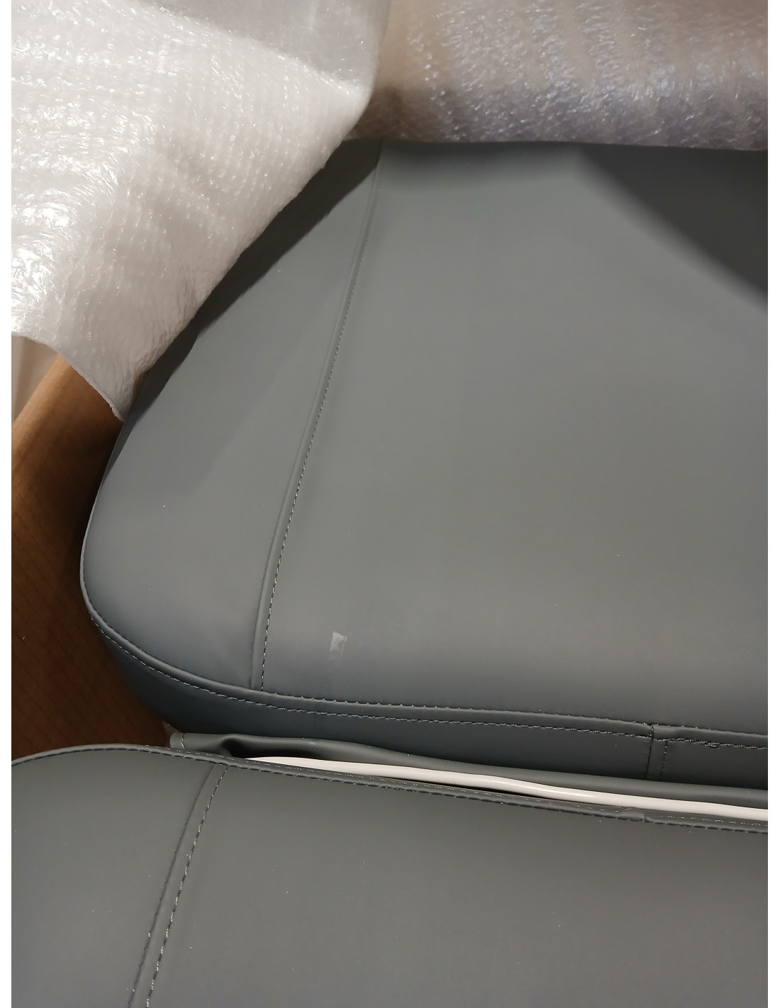 Fotel wypełniony jest wyprofilowaną pianką i pokryty przyjemną w dotyku skórą syntetyczną w odcieniach szarości. Użyty materiał sprawia, że sprzęt jest łatwy w czyszczeniu, a także odporny na wilgoć i wybrane środki dezynfekcji. Solidna podstawa wykonana z trwałego materiału w odcieniach bieli zapewnia stabilność w trakcie zabiegów. Odpowiednio wyprofilowane obszycia nadają fotelowi stylowy wygląd i sprawiają, że siedzisko jest ergonomiczne. Minimalistyczny, prosty design i klasyczna kolorystyka pozwalają mu wpasować się w każde wnętrze.