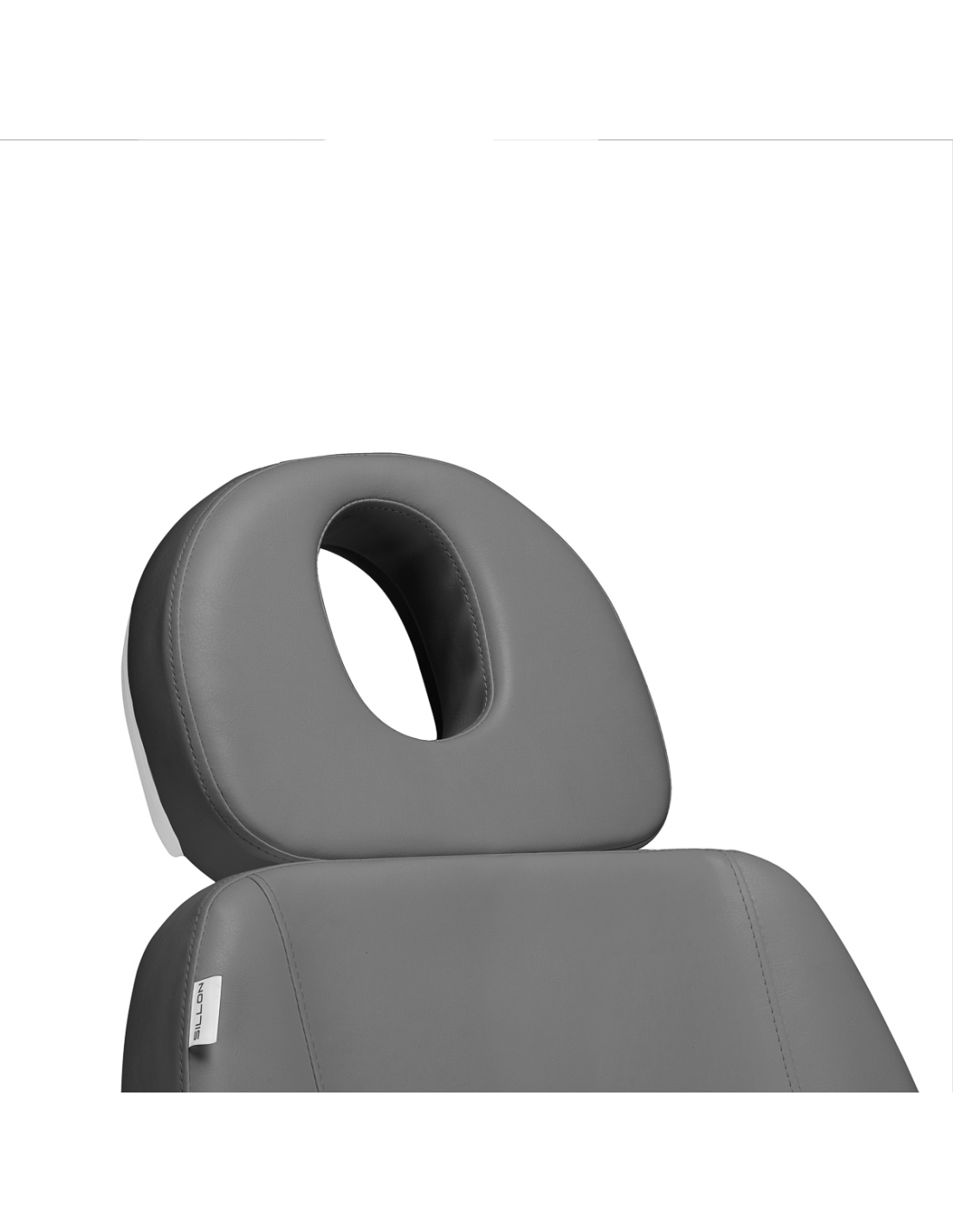 Szerokie siedzisko zapewni wygodę w trakcie długich zabiegów. Odpowiedni sposób wyprofilowania pianki nadaje fotelowi ergonomiczny kształt i umożliwia wygodne ułożenie w nim ciała, zapewniając wysoki komfort oraz odpowiednie wsparcie kręgosłupa. Sprzęt można rozłożyć do pozycji leżanki, a dzięki ukrytemu pod poduszką otworowi w zagłówku doskonale sprawdzi się także przy zabiegach na plecy czy masażach.