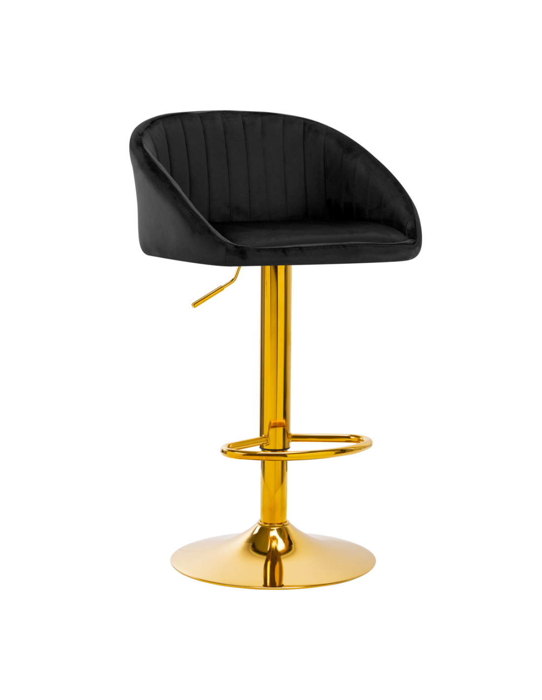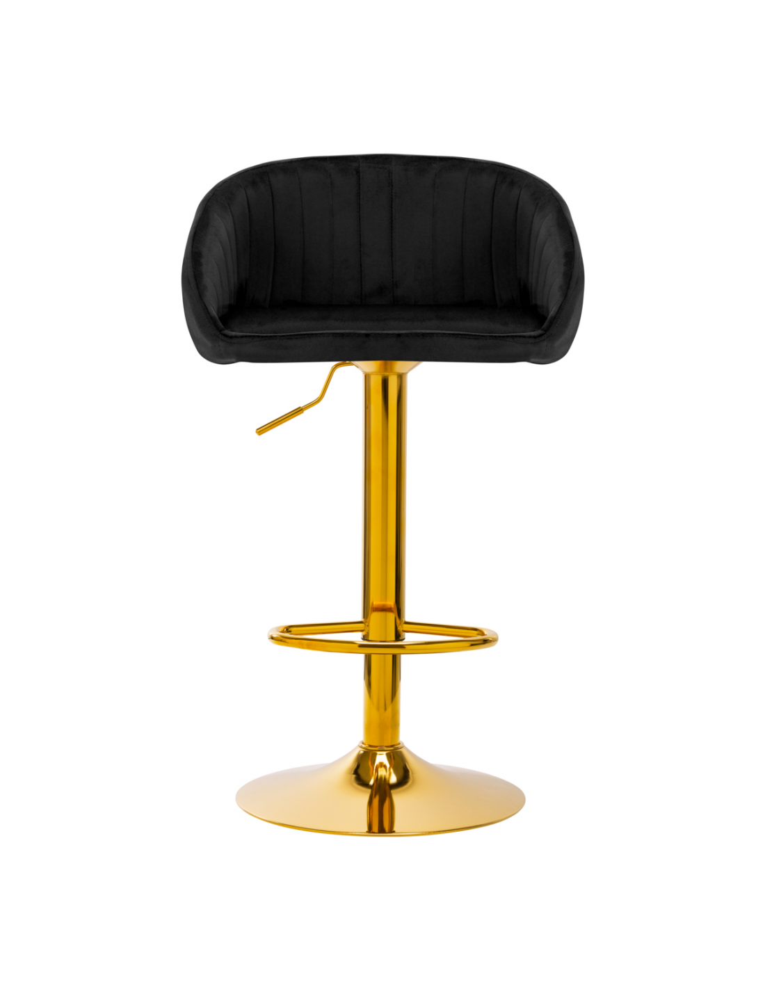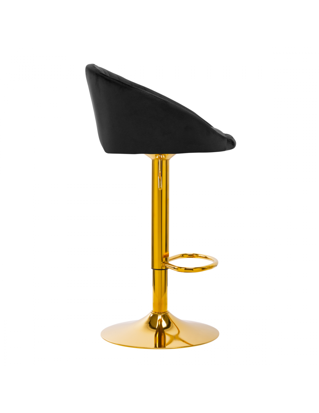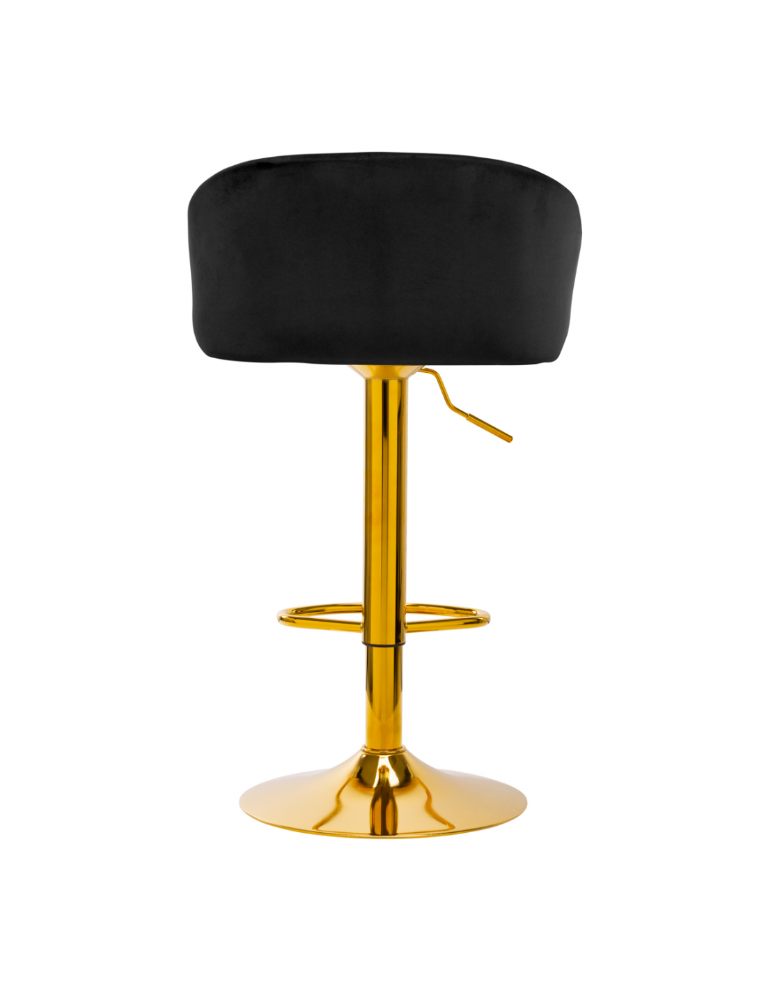 Hoker wyróżnia się przyjemnym w dotyku, welwetowym obiciem w odcieniach czerni, które nadaje mu ekskluzywny charakter. Stylowe przeszycia na oparciu hokera podkreślają elegancki wygląd i staranne wykonanie. Okrągła podstawa z antypoślizgową gumą zapewnia stabilność, a złoty kolor harmonizuje z welwetowym obiciem, nadając meblowi wyrafinowany styl. Ergonomicznie wyprofilowane siedzisko oraz regulowana wysokość sprawiają, że hoker jest idealnym wyborem dla osób ceniących sobie styl oraz wygodę.
