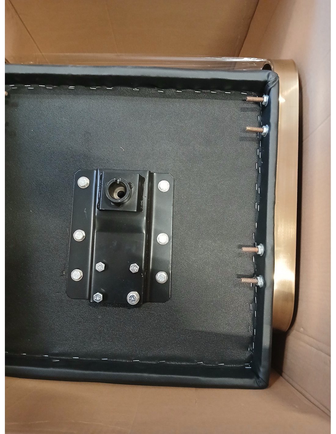 Regulowany w płaszczyźnie pionowej. Bardzo stabilny i solidny. Obicie z najwyższej jakości ekoskóry koloru czarnego.