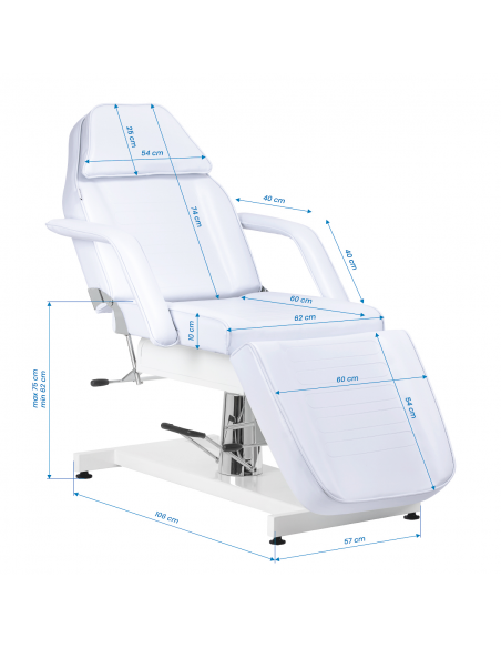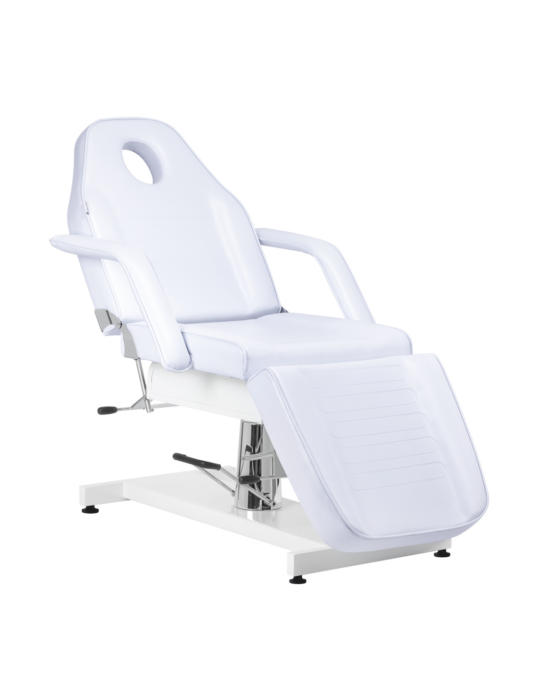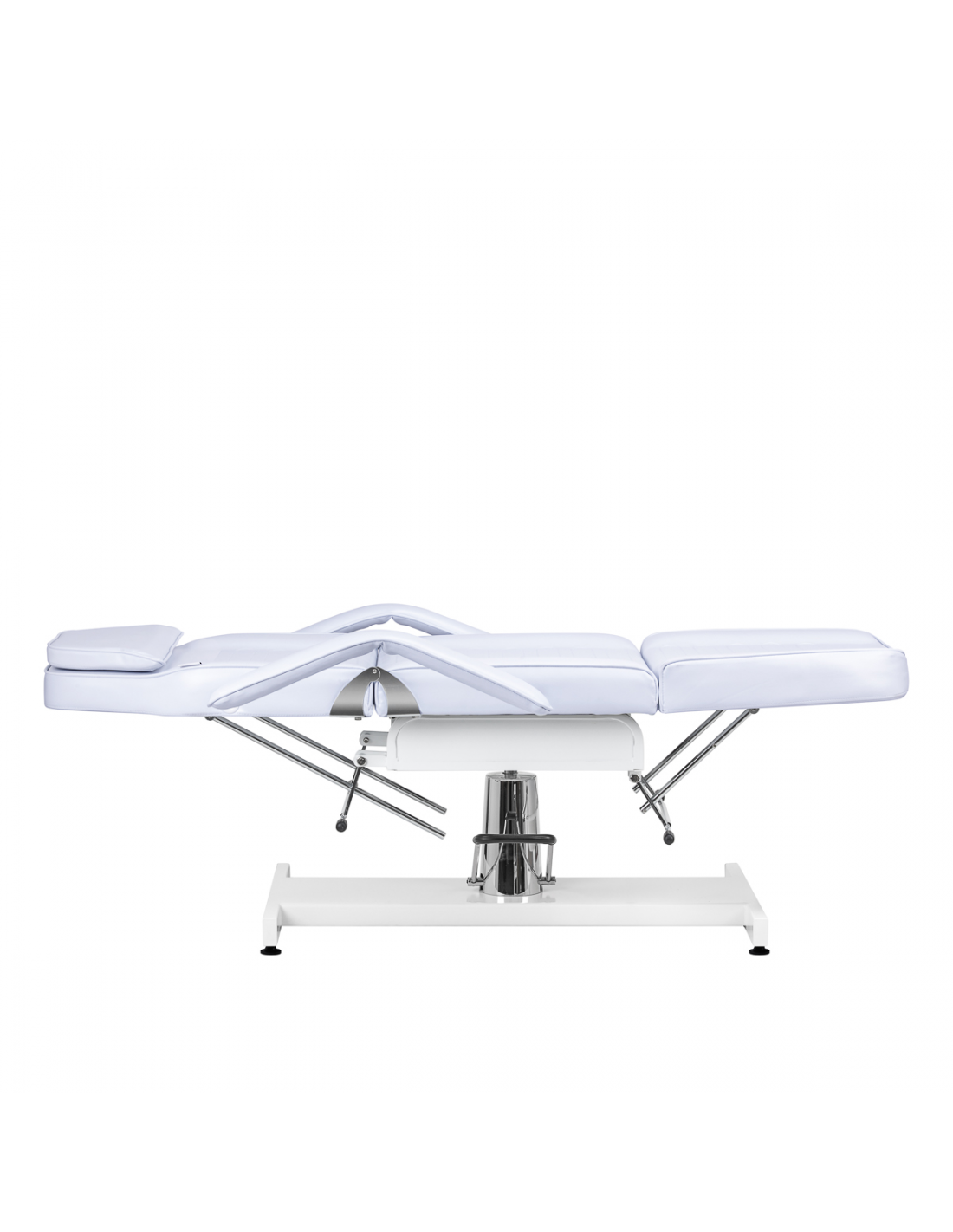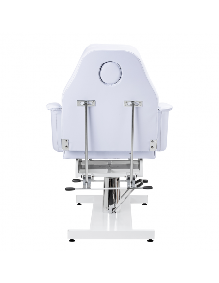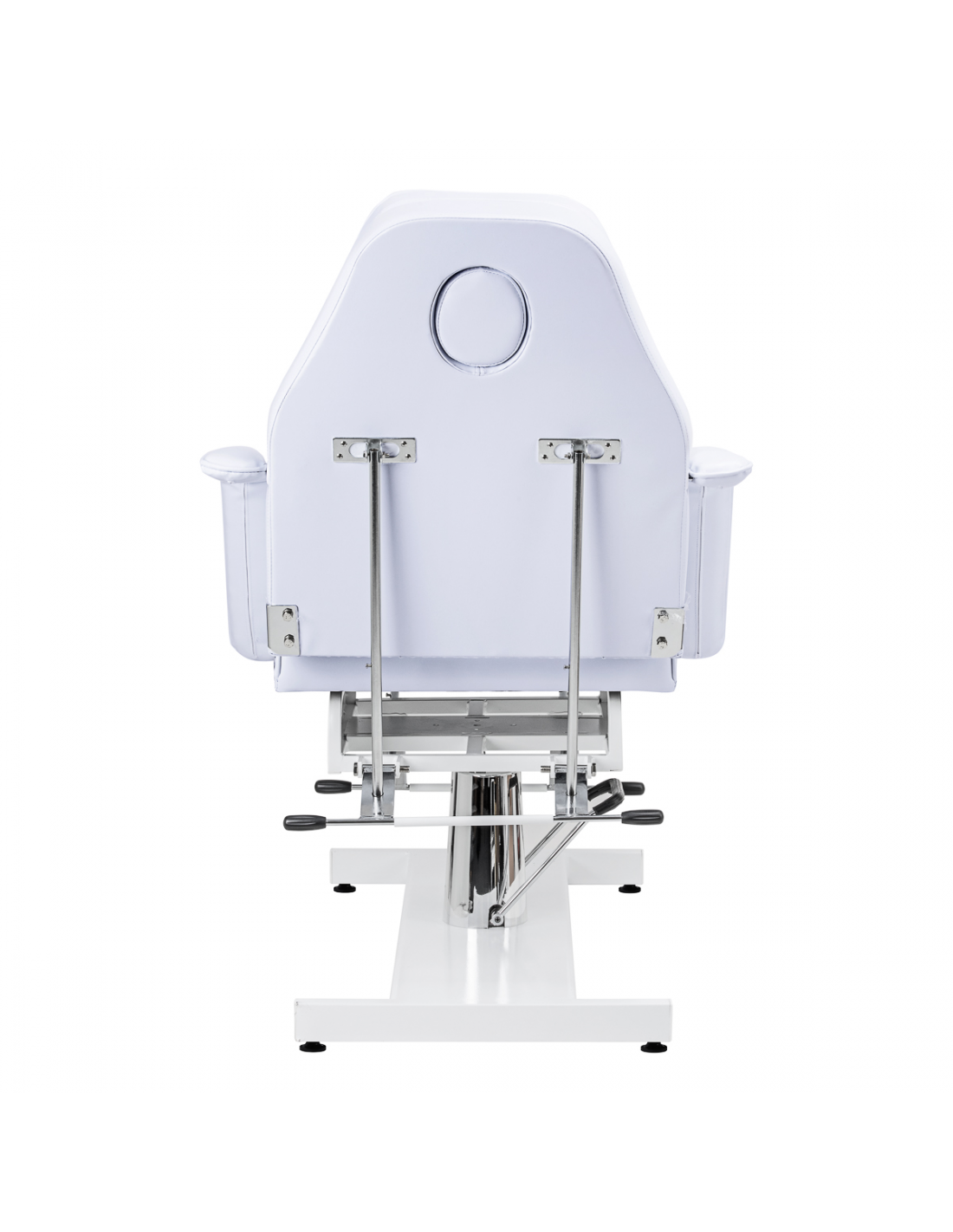 Wysokość fotela można dostosowywać w zakresie 62-75 cm bez użycia rąk za pomocą pompy hydraulicznej. Pozwala to na komfortowe korzystanie ze sprzętu osobom o różnym wzroście i umożliwia dostosowanie go do indywidualnych potrzeb zarówno klienta, jak i osoby wykonującej zabieg. Zastosowany mechanizm jest bardzo trwały i niezawodny. Dzięki otworowi w zagłówku, który jest ukryty pod odpowiednio wyprofilowaną poduszką, fotel doskonale sprawdzi się również przy zabiegach przeprowadzanych na plecach, takich jak masaże.