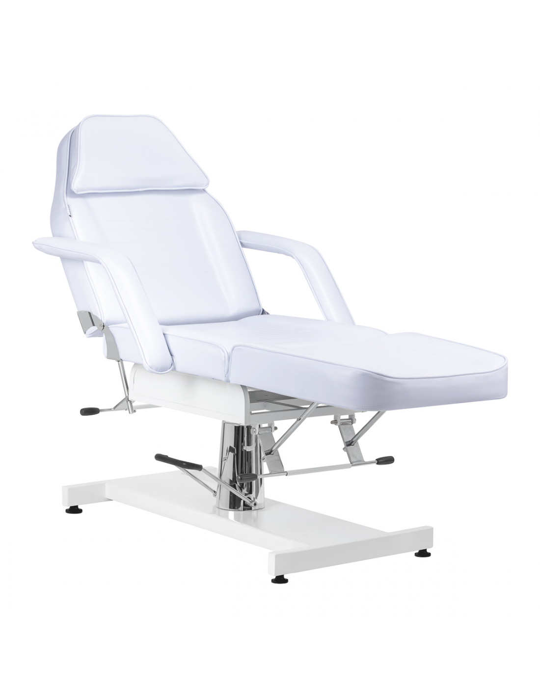 Przy pomocy specjalnych dźwigni możliwa jest bezstopniowa regulacja kątów, pod którymi znajdują się podnóżek i oparcie. Pozwala to na optymalne dostosowanie ustawień do indywidualnych potrzeb, dla prawidłowego i wygodnego wykonywania zabiegów oraz komfortu użytkowania. Fotel można rozłożyć aż do pozycji leżanki, co znacząco zwiększa jego funkcjonalność zarówno podczas zabiegów na twarz, jak i ciało.
