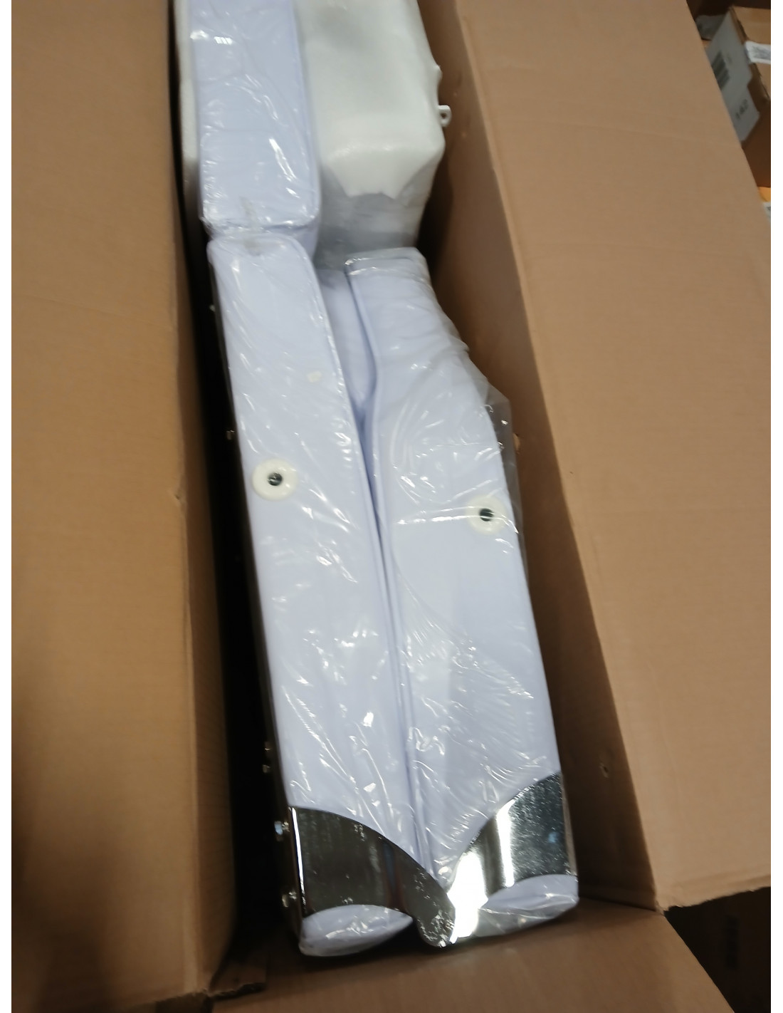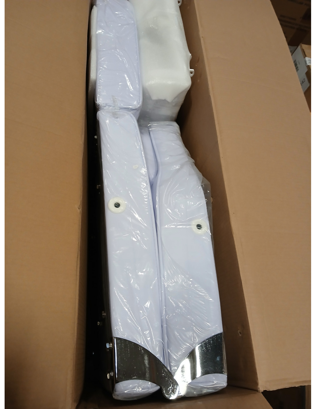 Zestaw zawiera: siedzisko z oparciem i podnóżkiem, komplet podłokietników, poduszka na otwór, elementy podstawy z siłownikiem, zestaw montażowy.