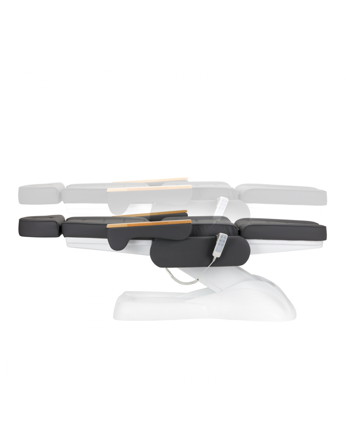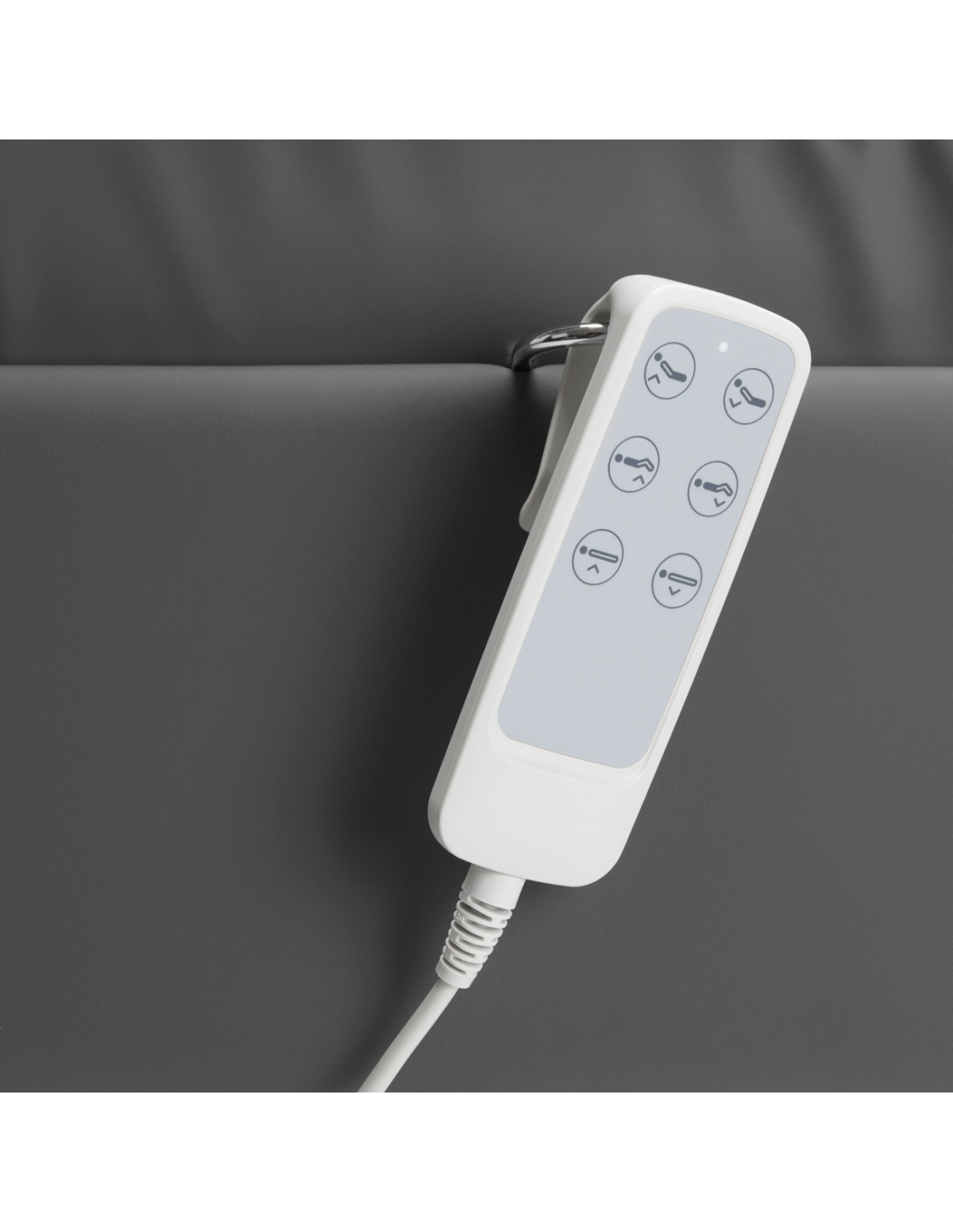 Używając intuicyjnego pilota, fotel można w płynny sposób dostosowywać w trzech płaszczyznach – posiada regulację wysokości i kątów nachylenia oparcia oraz podnóżka. Pozwala to swobodnie ustawiać pozycję odpowiednio do zabiegu wykonywanego w danym momencie, co wpływa zarówno na komfort użytkownika, jak i osoby wykonującej usługi.