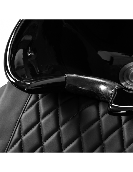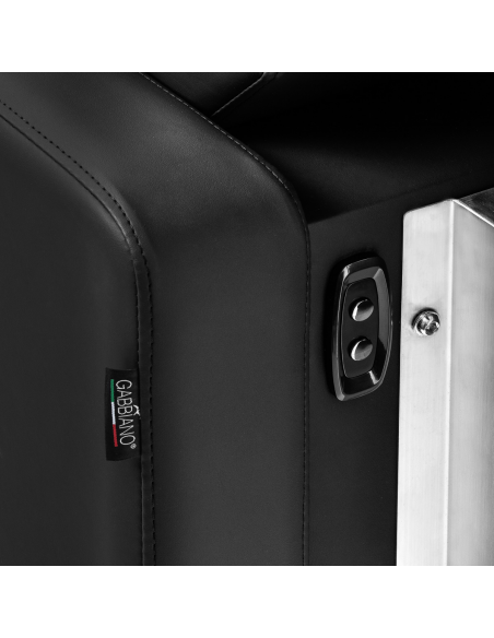 Myjnia fryzjerska Gabbiano Sylvia została stworzona z myślą o maksymalnym komforcie zarówno klienta, jak i stylisty – idealnie sprawdza się podczas zabiegów pielęgnacyjnych, koloryzacji czy dłuższych procedur. Prosta, geometryczna forma i wyraźnie zarysowane linie siedziska oraz podłokietników nadają jej nowoczesny, elegancki charakter. Oparcie ustawione pod optymalnym kątem zapewnia odpowiednie wsparcie dla kręgosłupa, a stylowe przeszycia dodają całości estetyki. Wyprofilowane siedzisko wypełnione jest trwałą pianką, natomiast tapicerowane podłokietniki umożliwiają prawidłowe ułożenie barków i ramion. Pokrycie z wysokiej jakości skóry syntetycznej w odcieniach czerni wyróżnia się trwałością i łatwością czyszczenia. Myjnia prezentuje się elegancko i nowocześnie, podkreślając styl wnętrza salonu.