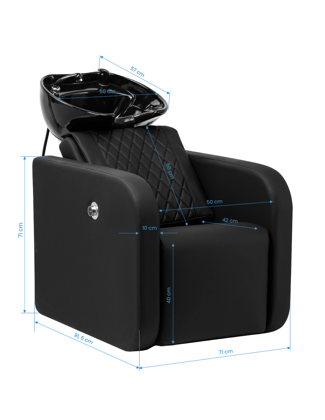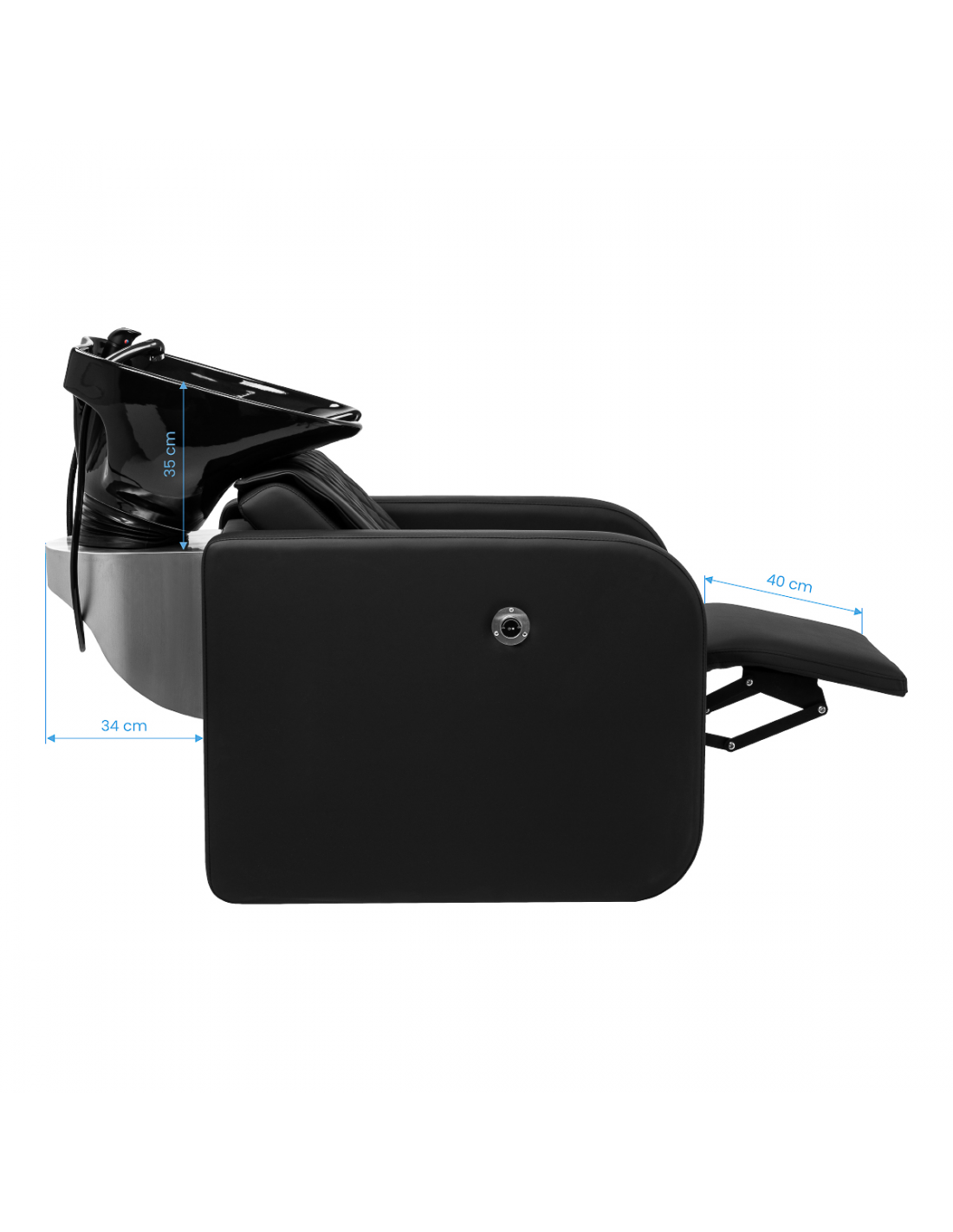 Regulowany elektrycznie podnóżek, sterowany za pomocą przycisków umieszczonych z tyłu fotela, umożliwia precyzyjne dopasowanie pozycji do potrzeb klienta. Ergonomiczne ułożenie ciała pomaga zmniejszyć napięcie mięśniowe, co znacząco podnosi komfort – zwłaszcza podczas dłuższych zabiegów pielęgnacyjnych. To połączenie wygody i funkcjonalności sprawia, że myjnia sprosta oczekiwaniom nawet najbardziej wymagających użytkowników.