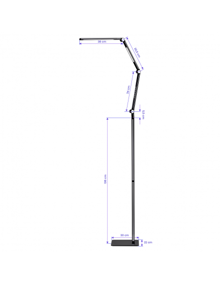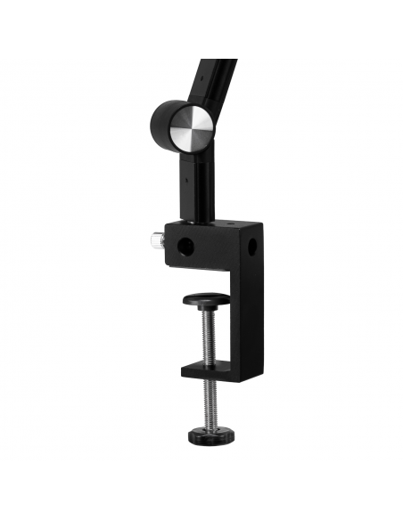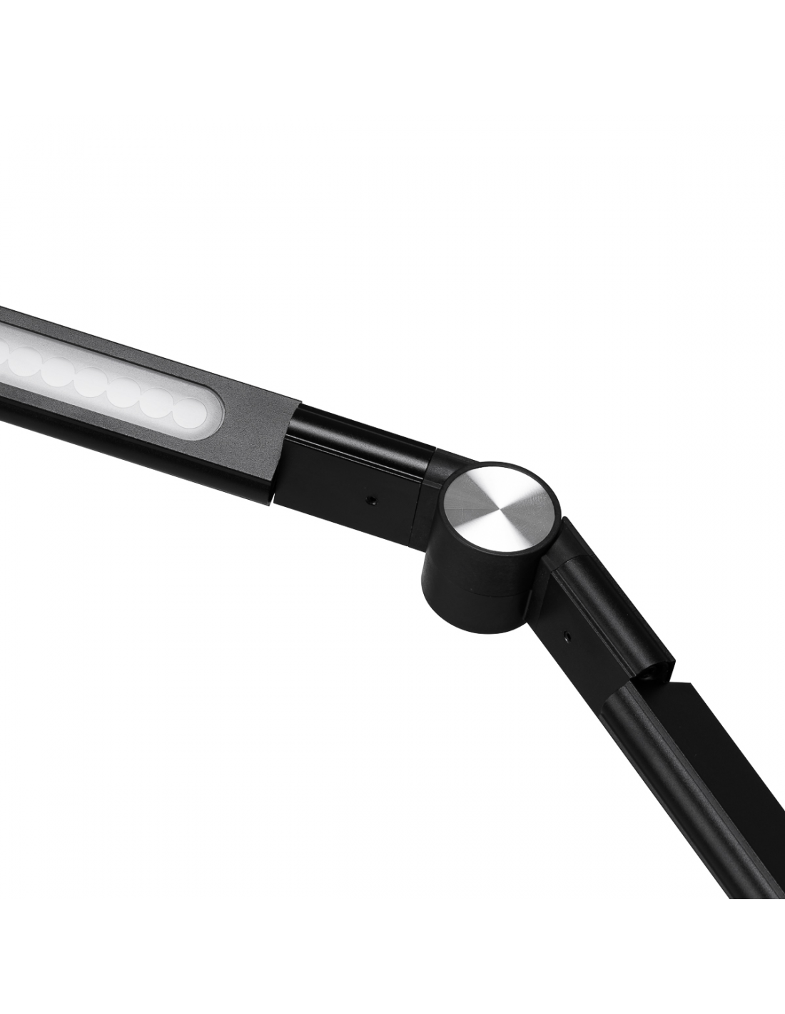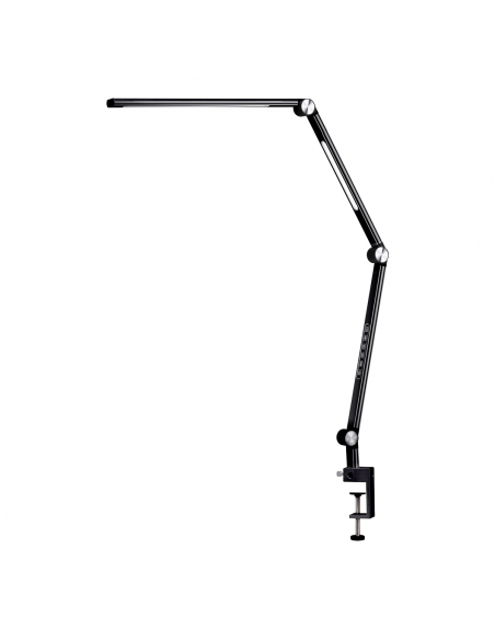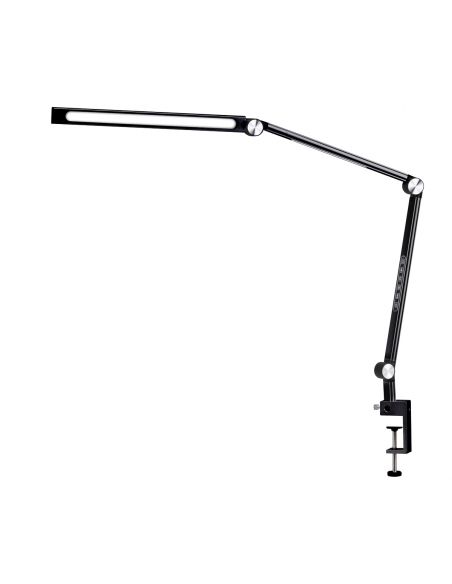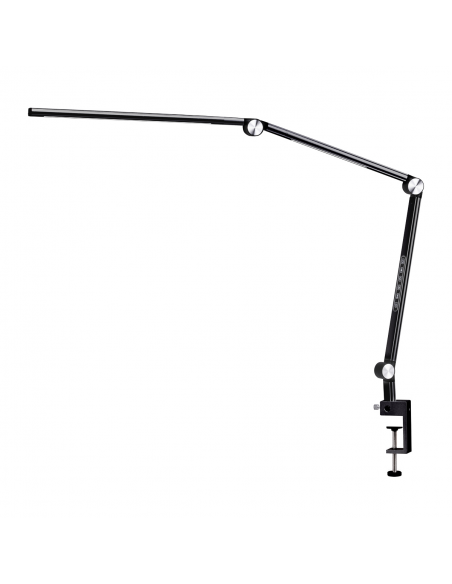 Lampa o prostej, aluminiowej formie w czarnym, matowym wykończeniu zachwyca futurystycznym wyglądem, który doskonale wkomponuje się w niemal każde wnętrze. Dzięki uchwytowi działającemu na zasadzie imadła możliwy jest łatwy i stabilny montaż do blatu, a statyw o wysokości 135 cm zapewnia odpowiednią funkcjonalność. Gładka powierzchnia lampy sprawia, że jest wyjątkowo łatwa w utrzymaniu czystości, eliminując problemy z trudno dostępnymi elementami.