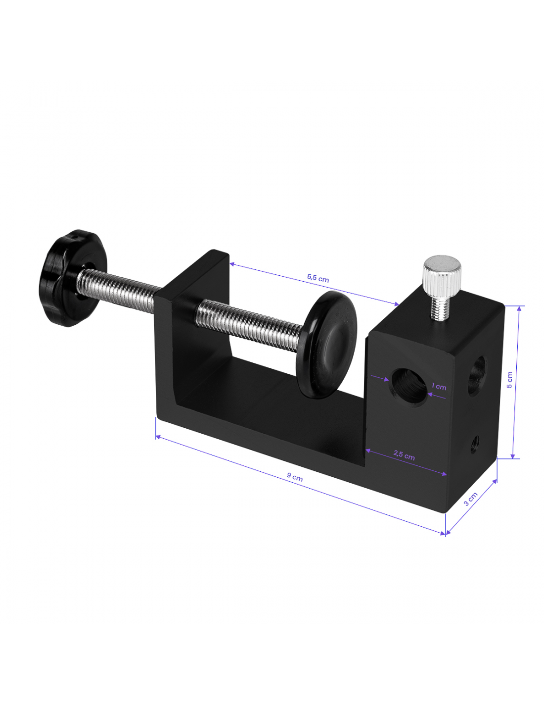 Lampa wyposażona jest w uchwyt działający na zasadzie imadła, który umożliwia szybki i wygodny montaż na blacie. Maksymalne rozwarcie uchwytu wynosi 5,5 cm, co sprawia, że pasuje do większości powierzchni roboczych. Możliwość zamontowania lampy w różnych pozycjach uchwytu zapewnia dużą elastyczność, pozwalając na precyzyjne dopasowanie jej ustawienia. Dzięki temu lampa oferuje szerokie możliwości personalizacji i łatwe dostosowanie oświetlenia do indywidualnych potrzeb.