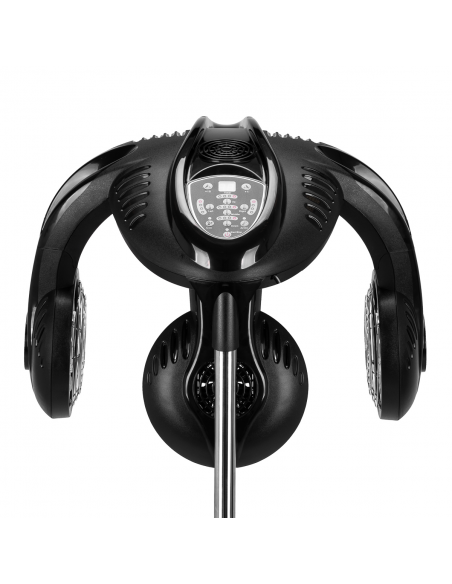 Futurystyczna obudowa wykonana z trwałego tworzywa sztucznego w odcieniach czerni nadaje urządzeniu nowoczesnego i wyjątkowego wyglądu, dzięki czemu wpasuje się w większość wnętrz. Dodatkowo jest trwały i łatwy do czyszczenia. Stabilność zapewnia czteroramienna podstawa, która jest wyposażona w kółka, gwarantujące mobilność. Regulowany w zakresie 142-162 cm statyw gwarantuje komfortową pracę i dostosowanie urządzenia do indywidualnych potrzeb.