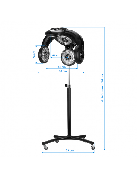 Profesjonalny infrazon stojący Gabbiano GL-505S to urządzenie niezbędne podczas wykonywania usług, przy których przydatna jest wysoka temperatura, takich jak: koloryzacja, rozjaśnianie, zabiegi pielęgnacyjne czy suszenie, a także stylizacji trwałych. Urządzenie znacznie skraca czas trwania zabiegu, pozwalając przyjąć większą liczbę klientów przy zachowaniu wysokiej jakości świadczonych w salonie usług.