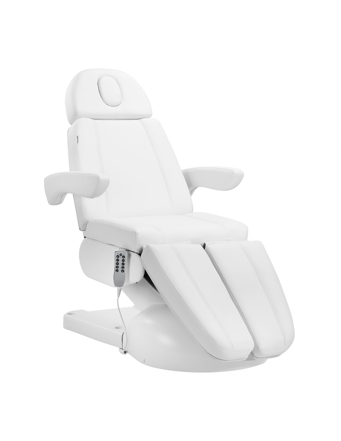 Elektryczny fotel kosmetyczny Azzurro Lux to nowoczesne rozwiązanie stworzone z myślą o wymagających specjalistach. Zastosowanie trzech siłowników sterowanych przewodowo gwarantuje precyzyjną i bezproblemową regulację poszczególnych części fotela. Fotel wyróżnia się wysoką stabilnością oraz wszechstronnością zastosowania, dzięki czemu doskonale sprawdza się w gabinetach kosmetycznych, podologicznych oraz medycyny estetycznej. Intuicyjna obsługa i szeroki zakres regulacji pozwalają na komfortowe dopasowanie fotela do potrzeb zarówno klienta, jak i osoby wykonującej zabieg.