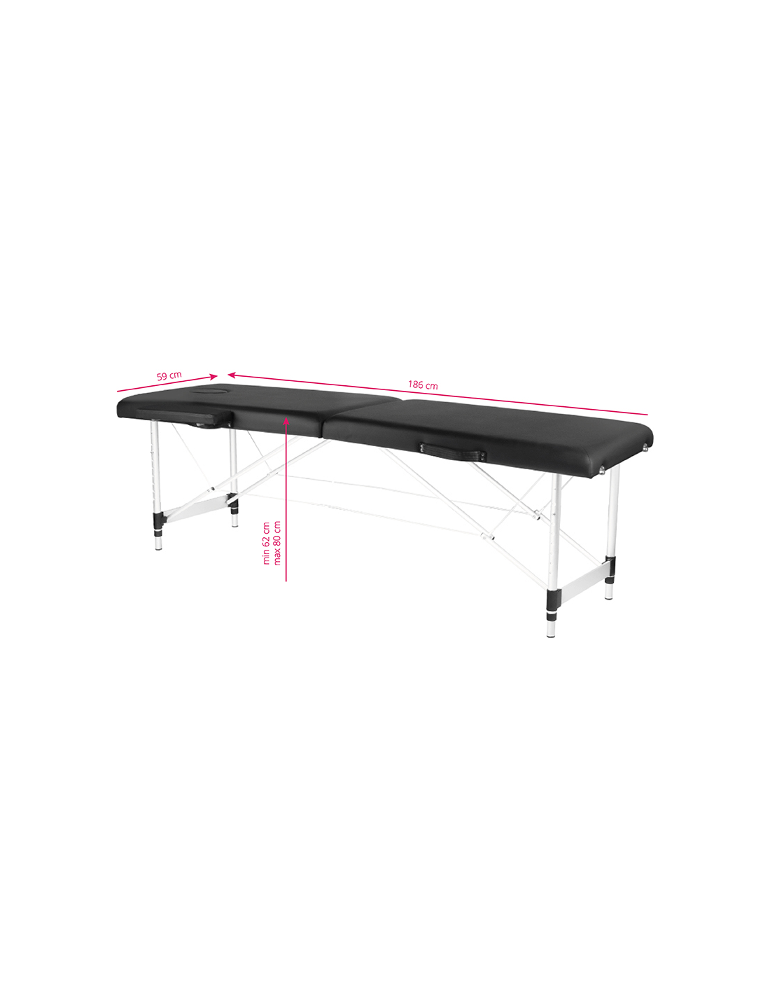 Stół składany do masażu aluminiowy komfort Activ Fizjo 2 segmenty czarny