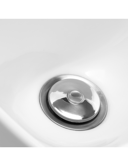 Odpowiednia głębokość białej ceramicznej misy umywalki zapobiega nadmiernemu rozchlapywaniu wody czy produktów stosowanych w trakcie zabiegów. Pozwala to na komfortowe i efektywne wykonywanie szerokiej gamy usług. Kąt nachylenia misy można dostosowywać, dzięki czemu łatwo o dopasowanie do indywidualnych potrzeb. Wysoka jakość zastosowanych materiałów sprawia, że umywalka jest wytrzymała, odporna na przebarwienia i zadrapania oraz bardzo łatwa do czyszczenia. Odpowiednio wyprofilowany kołnierz oraz nachylone oparcie zapewniają wsparcie i wygodę w trakcie mycia włosów, a dzięki komfortowej nakładce z tworzywa sztucznego w odcieniach czerni klient nie odczuje nieprzyjemności związanych z chłodem ceramicznej powierzchni.