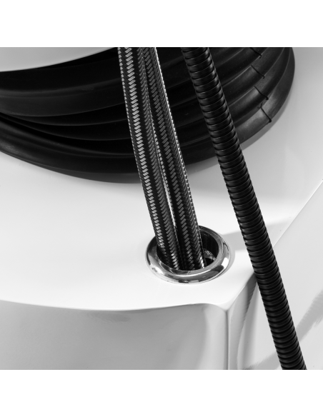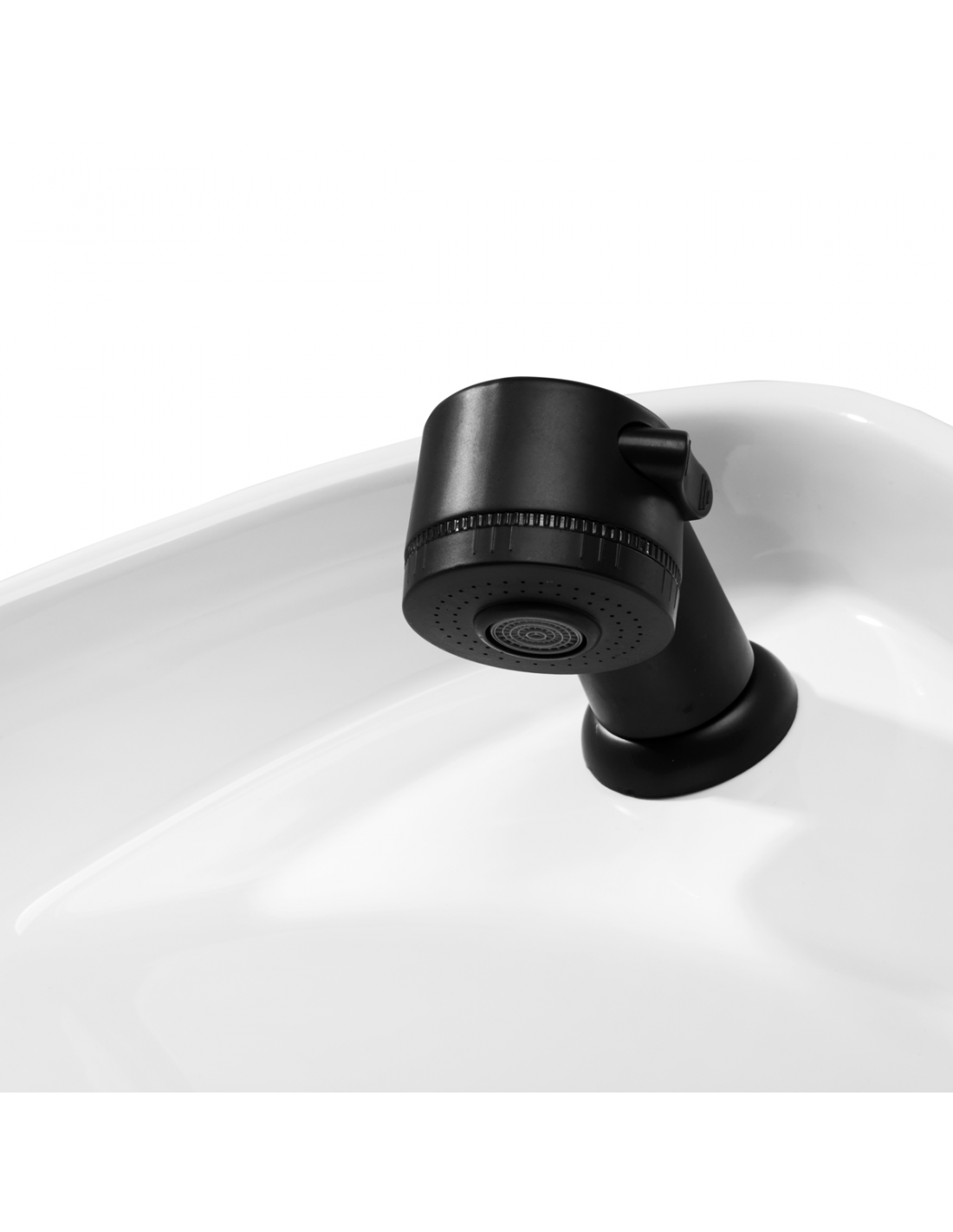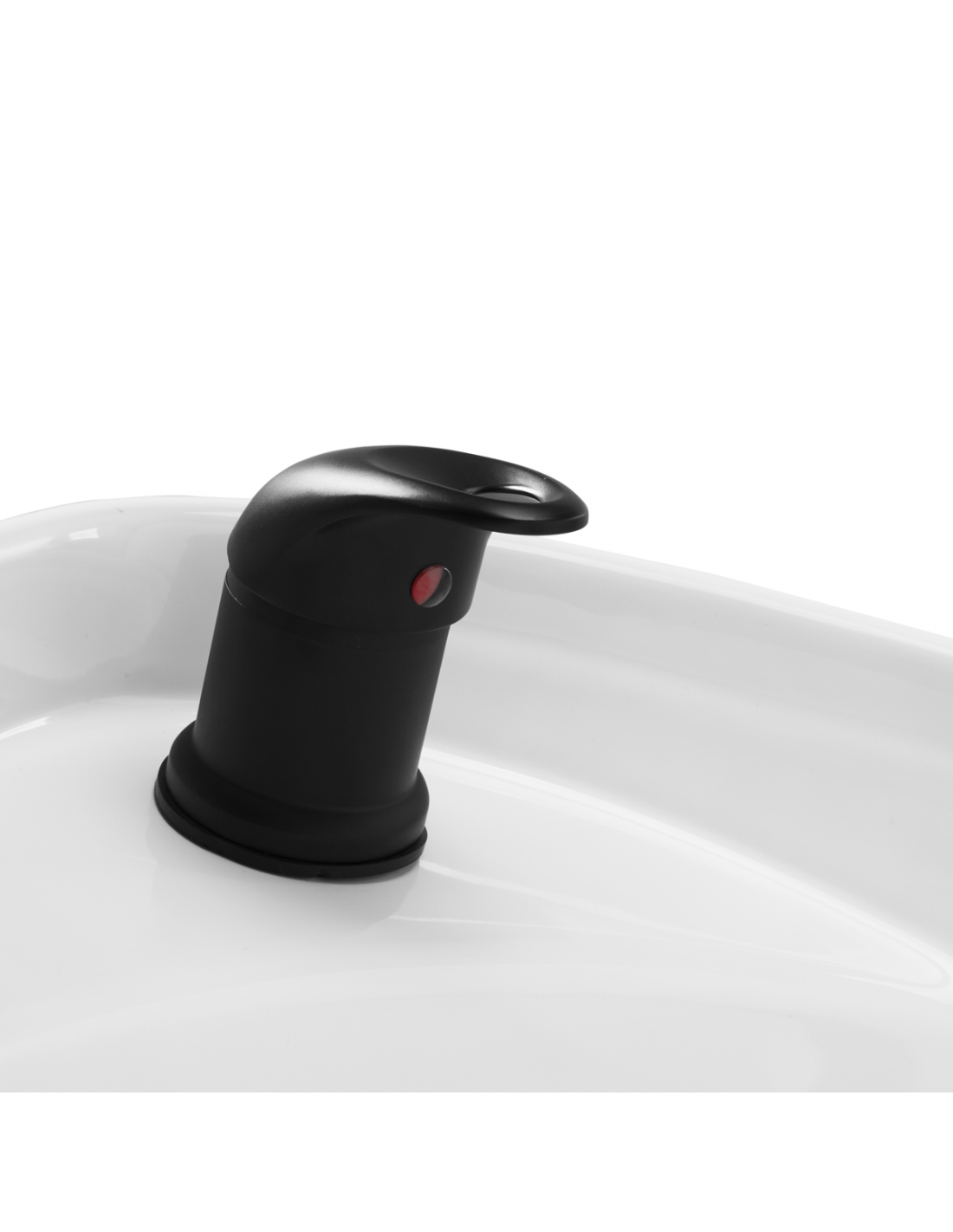 Praktyczna myjnia wyposażona została w baterię z mieszaczem, co zapewnia swobodny dostęp do ciepłej oraz zimnej wody. Ułatwia to dopasowanie temperatury do indywidualnych preferencji klienta. Dedykowane miejsce na odłożenie słuchawki usprawnia pracę, a chromowany korek ze specjalnym sitkiem pozwala na kontrolę przepływu wody oraz utrzymanie wysokich standardów higieny w salonie. Przyłącze wody zostało umieszczone wewnątrz podstawy, umożliwiając sprawne ukrywanie rur. Znacznym plusem tego modelu jest otwór pozostawiony pomiędzy oparciem a siedziskiem, który ułatwia zachowanie czystości w salonie, pozwalając w łatwy sposób wymieść zabrudzenia z każdego zakamarka fotela. Myjnia wyprofilowana została w taki sposób, by zapewniać wygodę podczas wykonywania różnorodnych zabiegów, gwarantując odpowiednie wsparcie pleców. Połączenie funkcjonalności i udogodnień sprawia, że praca w salonie fryzjerskim jest jeszcze bardziej komfortowa.