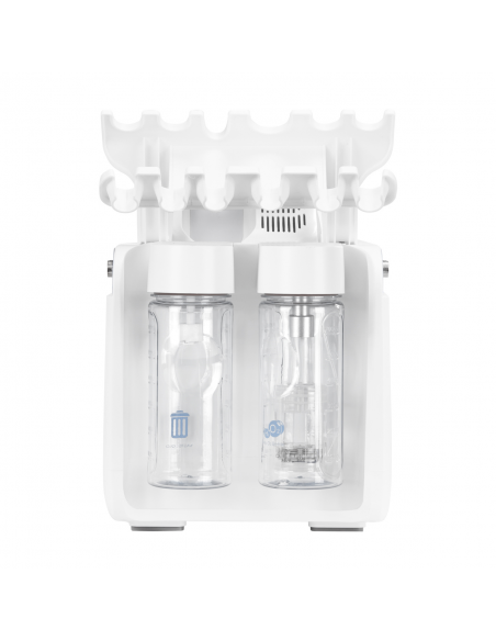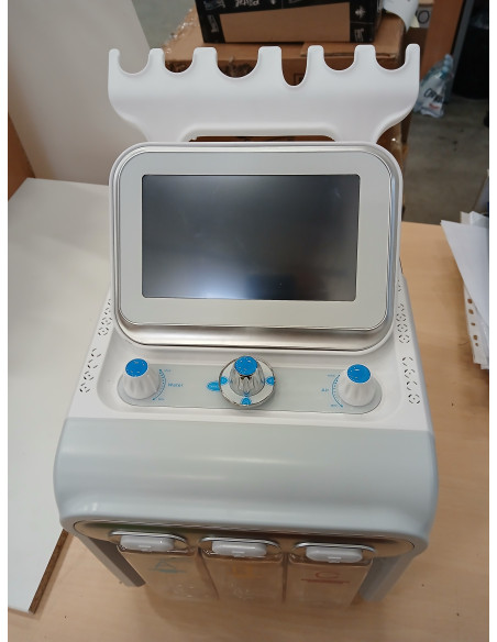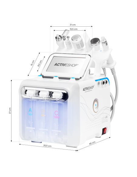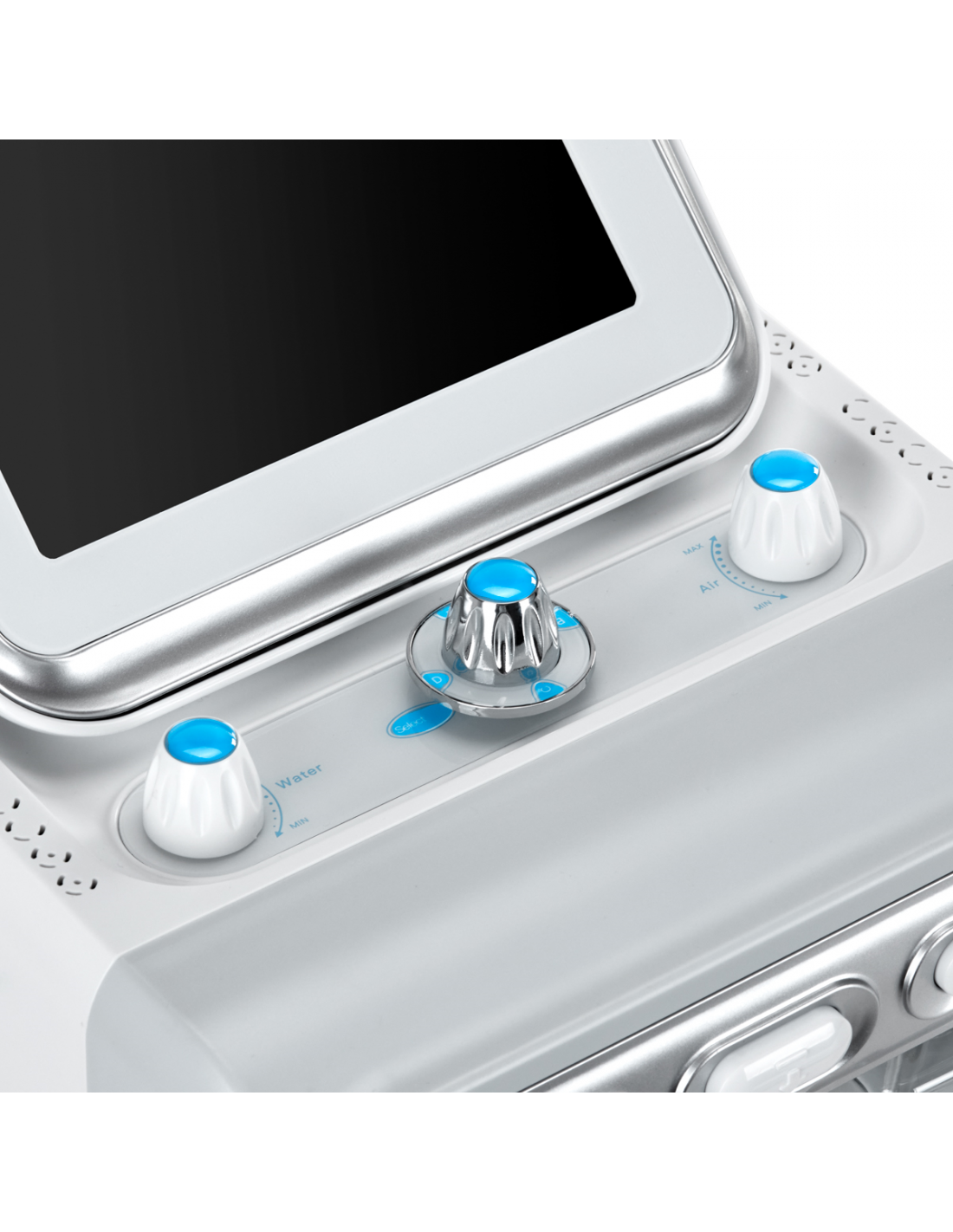 Nowoczesny sprzęt wyróżnia się eleganckim i ergonomicznym designem, stanowiąc estetyczny dodatek do przestrzeni salonu kosmetycznego. Kompaktowe wymiary sprawiają, że jest łatwy do przechowywania i transportu. Posiada również funkcjonalny system zbiorników na wodę oraz płyny niezbędne do zabiegów, co zapewnia wygodną i higieniczną pracę. Podstawka na głowice zapewnia łatwy dostęp do niezbędnych akcesoriów. Zastosowane materiały zapewniają trwałość oraz łatwość czyszczenia sprzętu.