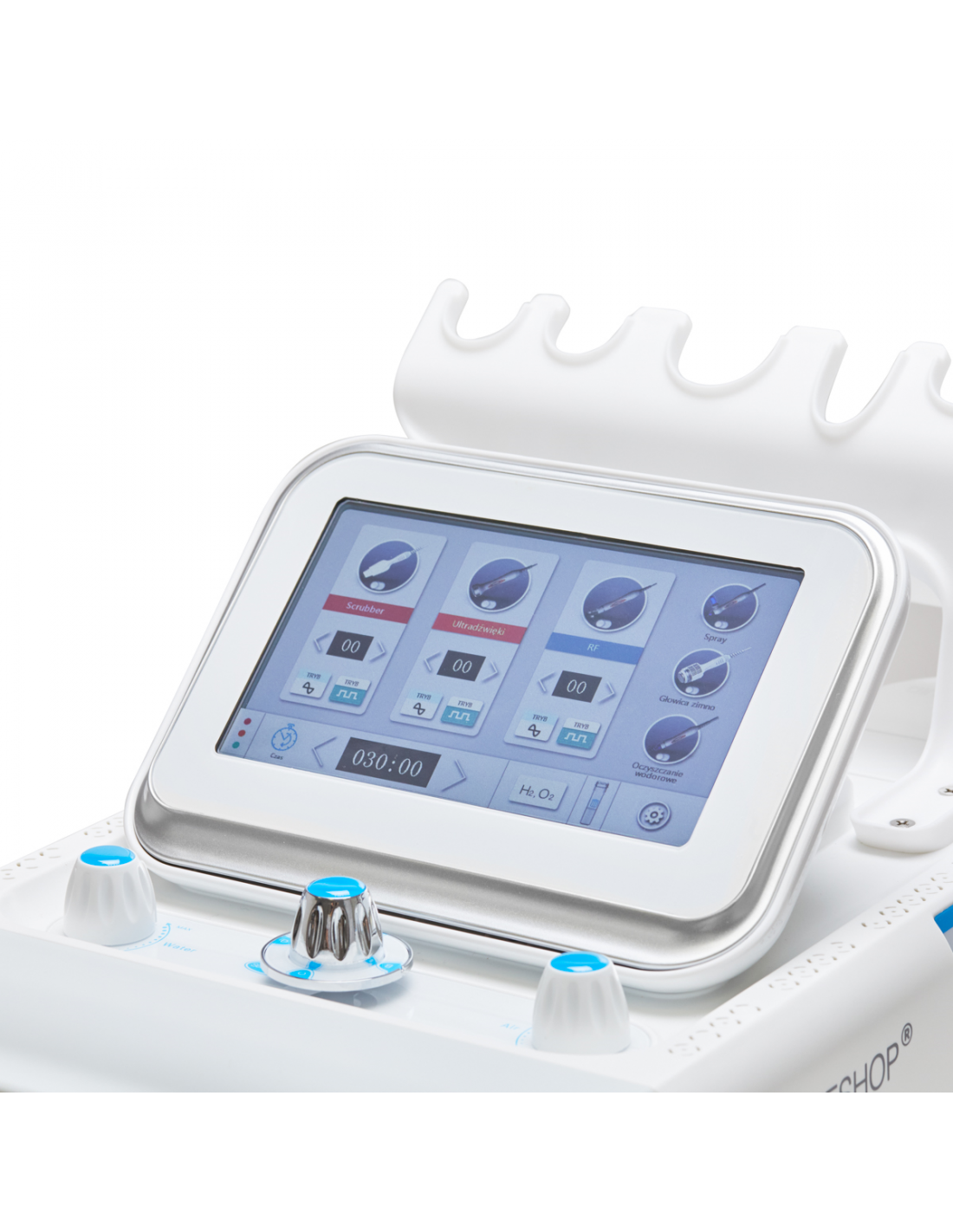 Kluczowym elementem urządzenia jest dotykowy panel, który zapewnia łatwość obsługi. Możliwość regulowania parametrów zabiegów oraz różnorodne opcje, takie jak wybór rodzaju, intensywności, czasu zabiegu czy trybu fali zabiegowej, pozwalają dostosować działanie urządzenia do konkretnych potrzeb klienta. Czytelny wyświetlacz ułatwia monitorowanie postępu zabiegu, co sprawia, że korzystanie z kombajnu staje się jeszcze bardziej komfortowe i efektywne.