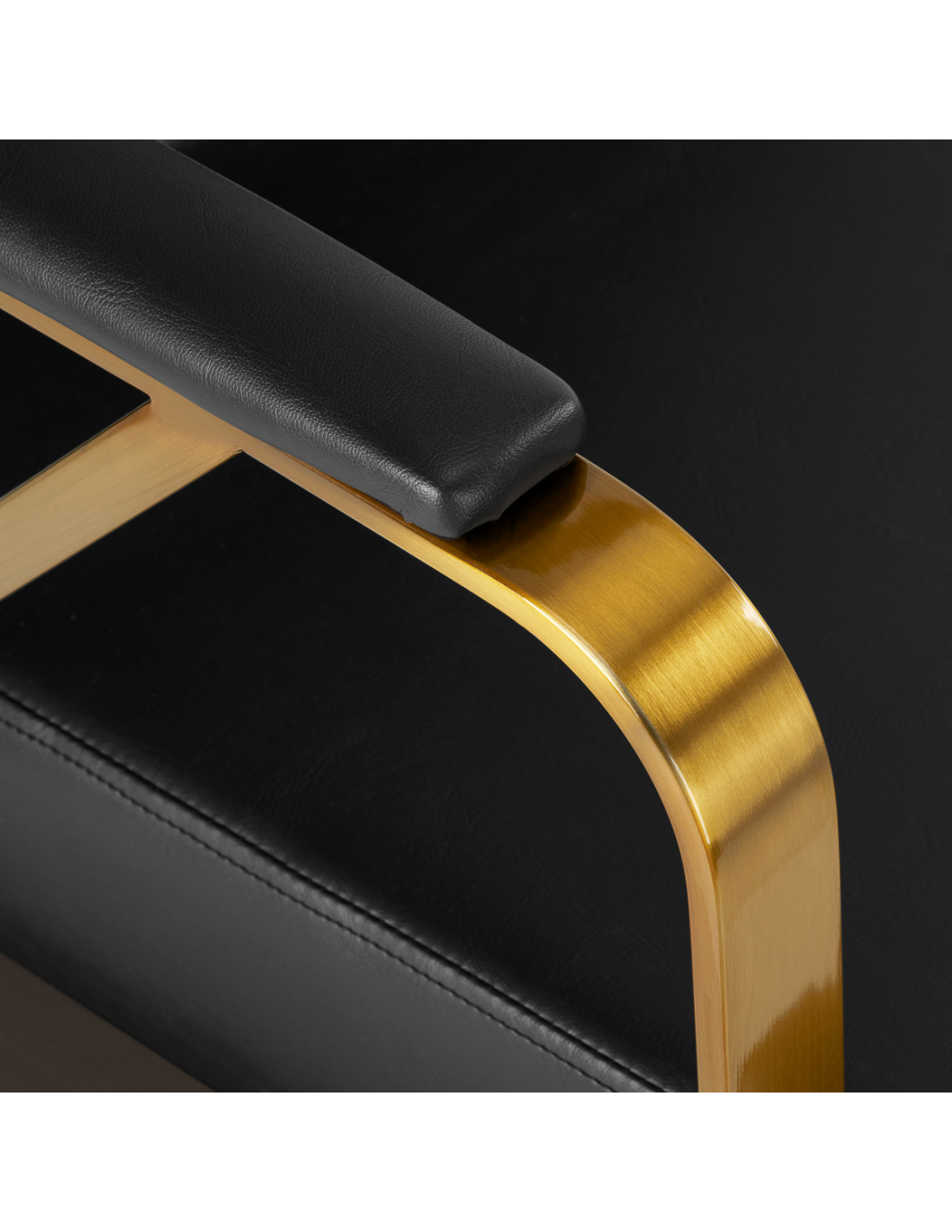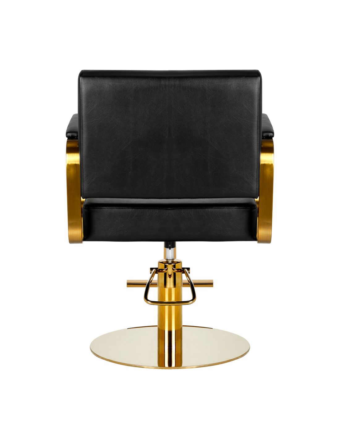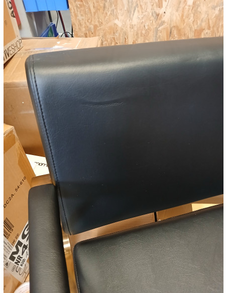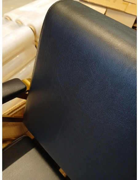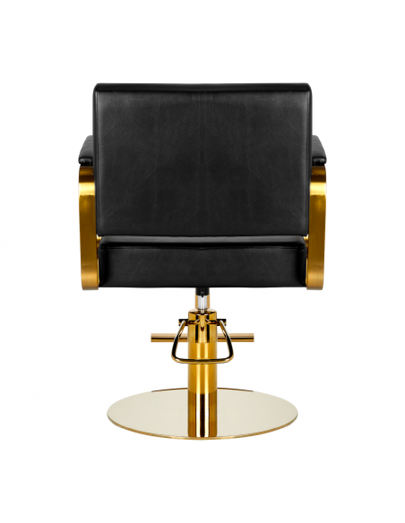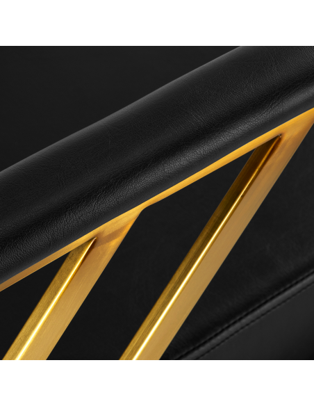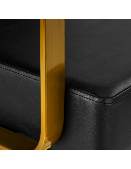 Wygodny mebel wypełniony jest trwałą, odporną na odkształcenia pianką, z kolei obicie wykonane jest z przyjemnej w dotyku skóry syntetycznej w odcieniach czerni. Zastosowane materiały zapewniają komfortowe użytkowanie mebla przez długi czas i sprawiają, że sprzęt jest odporny na wilgoć, wytrzymały oraz łatwy do czyszczenia. Ozdobne, geometryczne metalowe elementy w odcieniach złota na bokach fotela nadają meblowi wyraz ponadczasowej elegancji. Fotel fryzjerski Gabbiano B217 wyróżnia design, który nadaje mu wyjątkowy charakter i sprawia, że fotel będzie doskonale prezentować się w wielu eleganckich salonach.