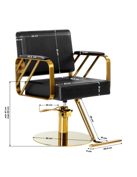 Swobodną regulację wysokości umożliwia wydajny podnośnik hydrauliczny, który pozwala dostosować poziom siedziska w granicach 47-60 cm – nawet w momencie, gdy klient już zajął miejsce na fotelu. Zapewnia możliwość swobodnego dopasowania fotela do wzrostu zarówno klienta, jak i fryzjera, gwarantując tym samym niezwykle ergonomiczną pracę. Obite skórą syntetyczną oparcie pozwala na zajęcie dogodnej pozycji. Zapewnia to doskonałe wsparcie dla pleców, co ma znaczenie zwłaszcza w przypadku zabiegów trwających wiele godzin. Dodatkowym atutem jest otwór znajdujący się pomiędzy oparciem a siedziskiem. Ułatwia on zachowanie czystości w salonie – ułatwia usuwanie włosów z każdego zakamarka fotela, skracając czas przygotowywania stanowiska pracy pomiędzy kolejnymi klientami.
