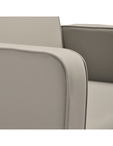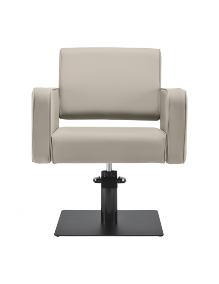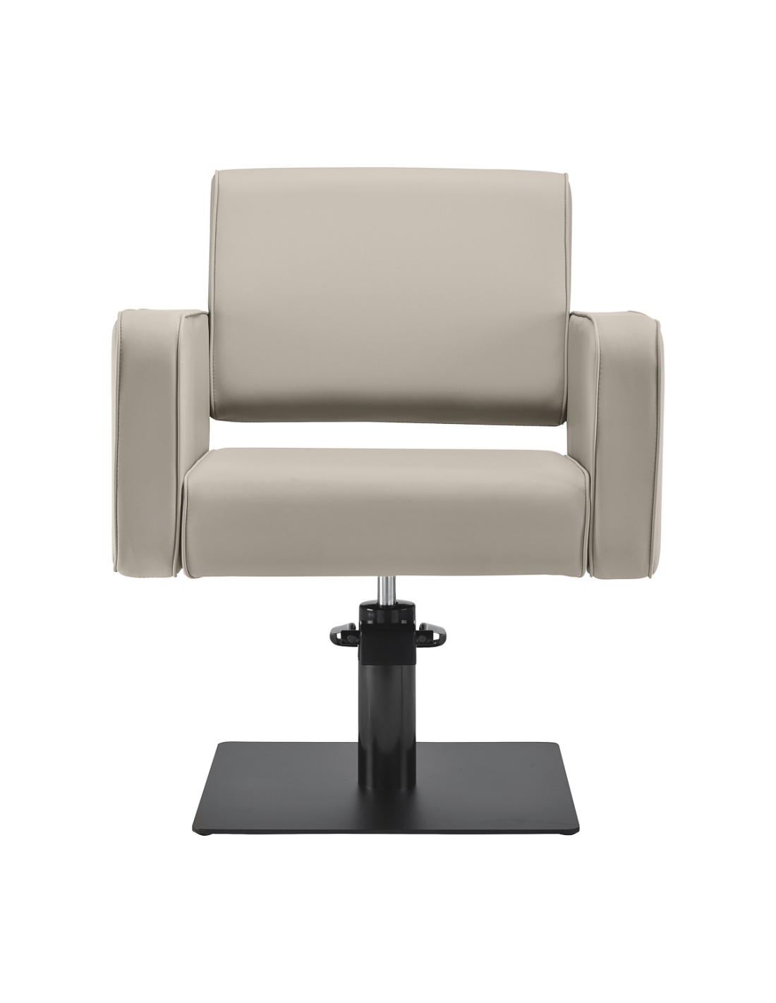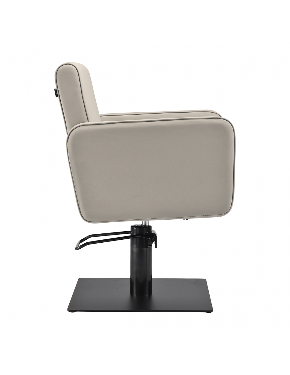 Fotel fryzjerski Gabbiano Bilbao łączy minimalistyczny design z funkcjonalnością i wygodą codziennego użytkowania. Subtelnie zaokrąglone linie nadają mu lekkości i nowoczesnego charakteru, a stabilna, kwadratowa podstawa w matowej czerni podkreśla jego stylowy wygląd. Miękkie wypełnienie w połączeniu z przyjemną w dotyku skórą syntetyczną w odcieniach szarości i beżu zapewnia wygodę nawet podczas długich zabiegów. Starannie dobrane materiały gwarantują trwałość, odporność na wilgoć oraz łatwość czyszczenia. Fotel doskonale komponuje się zarówno z nowoczesnymi, jak i klasycznymi aranżacjami, nadając salonowi profesjonalnego charakteru.