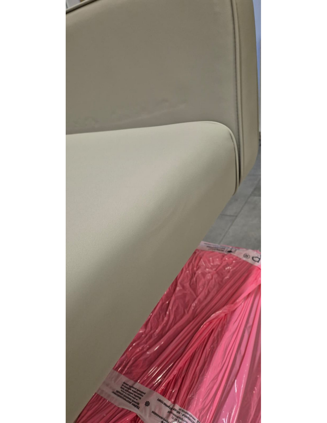 Siedzisko gwarantuje komfort nawet podczas wielogodzinnych zabiegów. Ergonomiczne podłokietniki wspierają prawidłową postawę klienta, zapewniając wygodę i ułatwiając precyzyjne cięcia oraz stylizacje. Mechanizm pełnego obrotu zapewnia większą mobilność i swobodę ruchów, sprawiając, że praca fryzjera jest płynniejsza, bardziej efektywna i mniej obciążająca. Dodatkowym udogodnieniem jest praktyczny otwór między oparciem a siedziskiem, który ułatwia utrzymanie czystości i szybkie usuwanie włosów z trudno dostępnych miejsc. Dzięki temu przygotowanie stanowiska na kolejnego klienta przebiega sprawnie i higienicznie.