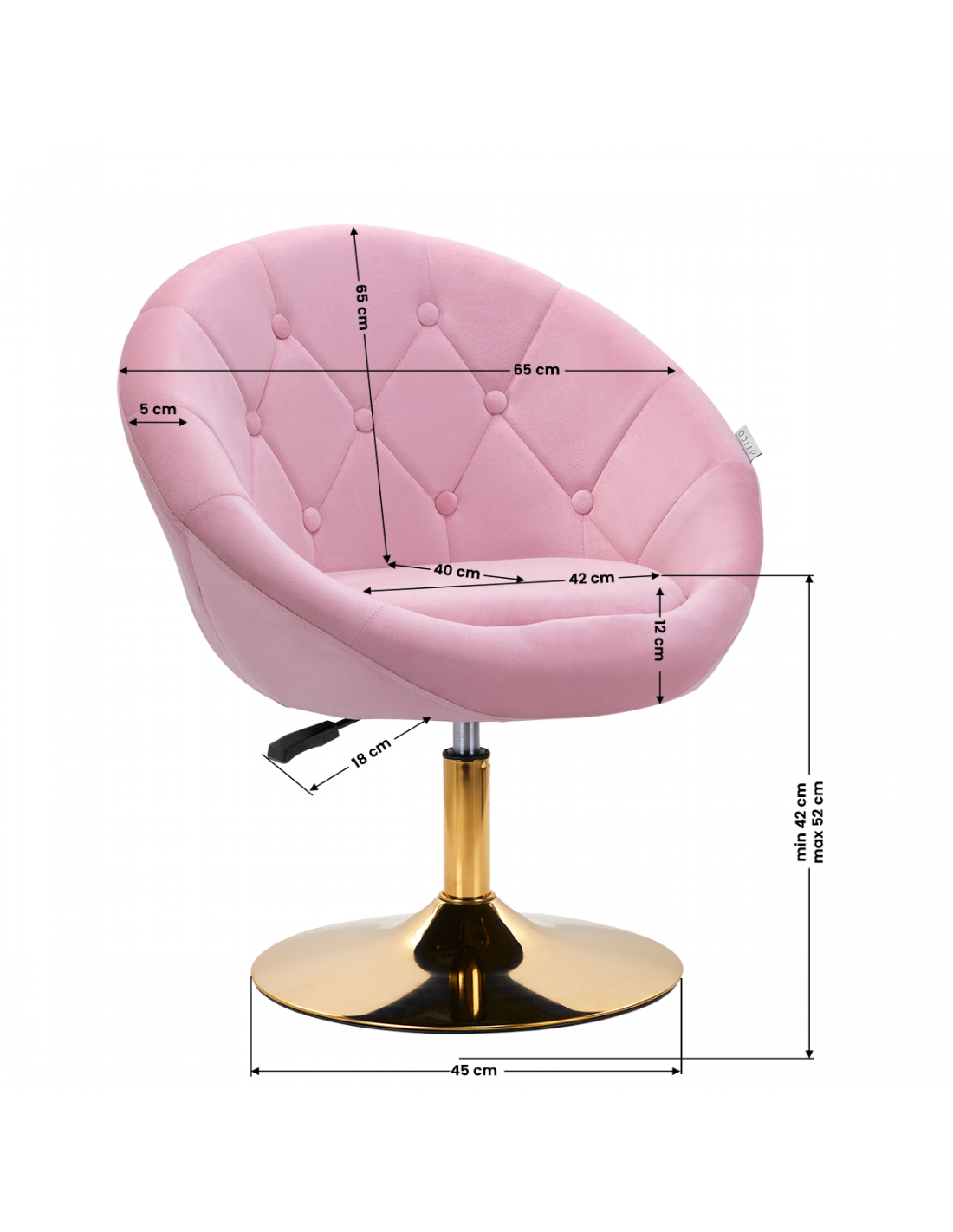 Luksusowe wykończenie sprawia, że mebel wpada w oko. Przyjemne w dotyku, welwetowe obicie w odcieniach różu wraz z ozdobnym pikowaniem nadają mu wyjątkowego charakteru. Stabilna, okrągła podstawa w odcieniach złota dodaje elegancji, idealnie komponując się z welwetem. Estetyka wykonania, komfort użytkowania, ergonomicznie wyprofilowane oparcie i estetyczne pikowanie sprawiają, że krzesło spełni wymagania nawet najbardziej wymagających użytkowników.
