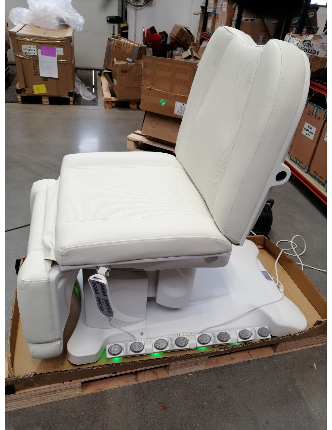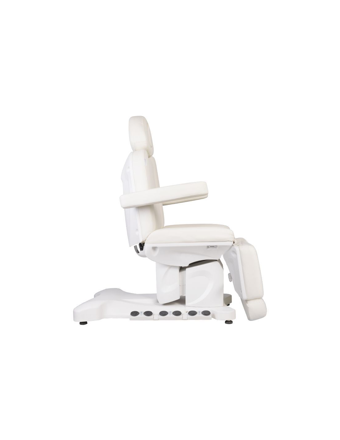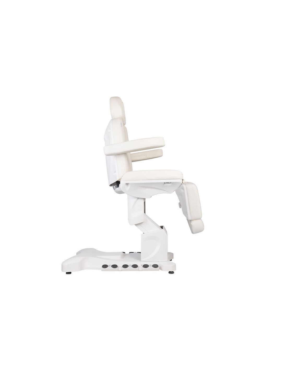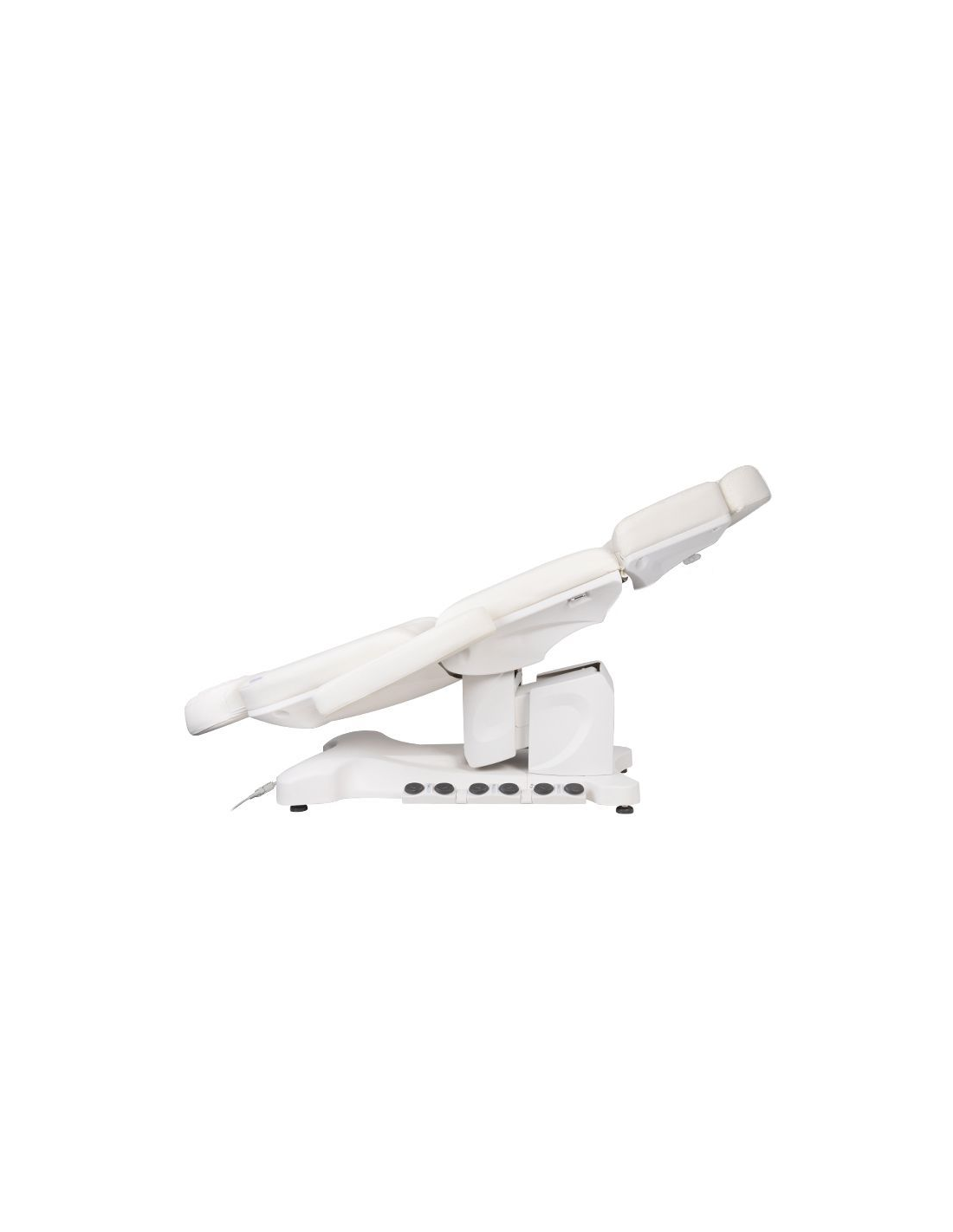 Wyjątkowy fotel kosmetyczny elektryczny idealnie nadający się do gabinetów kosmetycznych oraz salonów SPA. Dzięki niezależnym silnikom umożliwia regulację fotela w 3 płaszczyznach za pomocą pilota i przełączników nożnych dając możliwość komfortowego przeprowadzenia zabiegów na twarz oraz ciało. Używając pilota możemy korzystać z zaprogramowanych ustawień oraz uruchamiać funkcję HOT czyli podgrzewanie oraz pompowanie oparcia. W fotelu została zastosowana tapicerka perforowana niespotykana w innych fotelach oraz kolorowe podświetlenie LED podstawy.