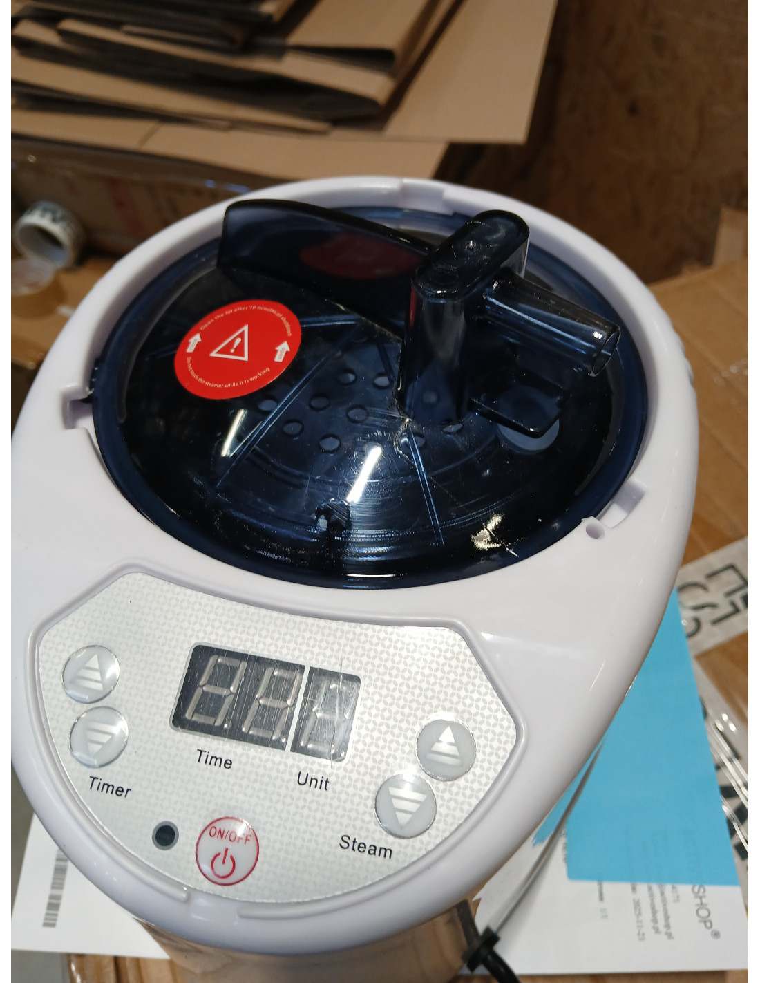 W zestawie: myjnia mobilna, kółka, nakładka na misę myjni (steam hood), parownica.