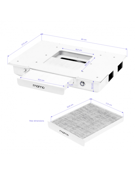 bezpośrednio do specjalnego filtra, który uniemożliwia wydostanie się go na zewnątrz. Kratka wykonana jest z wysokiej jakości metalu a kasetowy filtr do pyłu specjalnej bibuły filtracyjnej. Opcjonalnie można dokupić filtr z aktywnym węglem,który jest idealnym rozwiązaniem problemu alergenów, pyłów i drobnoustrojów