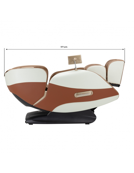 Fotel o ergonomicznym kształcie zapewnia wygodne podparcie pleców, karku i nóg, dostosowując się do naturalnych krzywizn ciała. Wnętrze obite jest miękką, syntetyczną skórą w eleganckim odcieniu beżu, a komfort użytkowania gwarantuje wypełnienie z trwałej pianki. Wykorzystane materiały są nie tylko trwałe, ale też odporne na wilgoć i łatwe do utrzymania w czystości. Precyzyjne obszycia podkreślają jego nowoczesny i estetyczny wygląd, a solidna konstrukcja zapewnia niezawodność przez długi czas. Model Sakura Luxury 808 łączy funkcjonalność z ponadczasowym designem, dzięki czemu doskonale komponuje się z różnorodnymi wnętrzami. To idealny wybór na relaks po intensywnym dniu lub wymagającym treningu.