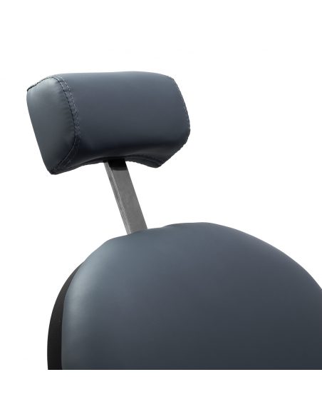 Trwały podnośnik hydrauliczny pozwala na swobodną regulację wysokości siedziska w granicach 56-70 cm, nawet w momencie, gdy klient siedzi na fotelu. Gwarantuje to ergonomię pracy oraz zapewnia możliwość dopasowania poziomu siedziska do wzrostu zarówno klienta, jak i osoby wykonującej zabieg. Fotel posiada odchylane oparcie oraz regulowany podnóżek, dzięki czemu możliwe jest ułożenie klienta w dogodnej, półleżącej pozycji. Takie ustawienie gwarantuje lepszy dostęp podczas niektórych usług. Dodatkowo wysuwany o 20 cm zagłówek zapewnia doskonałe podparcie głowy, dzięki możliwości dopasowania do indywidualnych potrzeb.