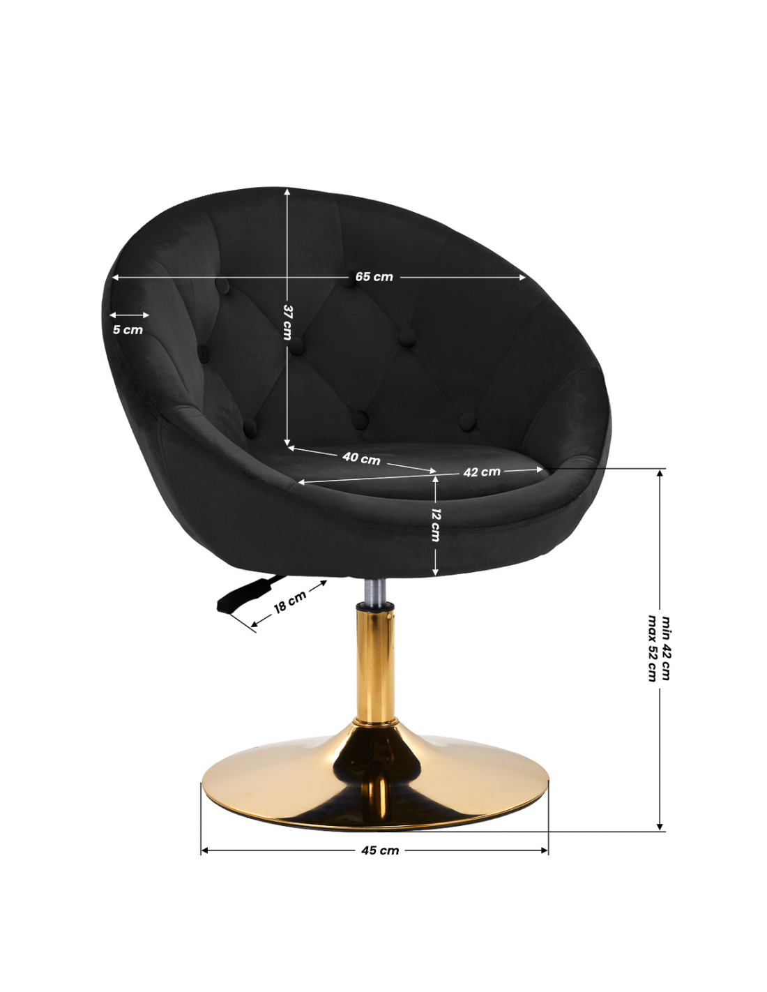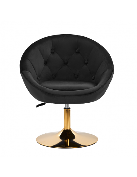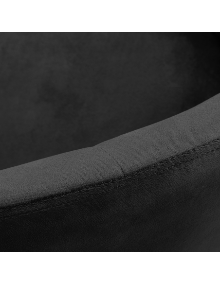 Luksusowe wykończenie sprawia, że mebel wpada w oko. Przyjemne w dotyku, welwetowe obicie w odcieniach czerni wraz z ozdobnym pikowaniem nadają mu wyjątkowego charakteru. Stabilna, okrągła podstawa w odcieniach złota dodaje elegancji, idealnie komponując się z welwetem. Estetyka wykonania, komfort użytkowania, ergonomicznie wyprofilowane oparcie i estetyczne pikowanie sprawiają, że krzesło spełni wymagania nawet najbardziej wymagających użytkowników.