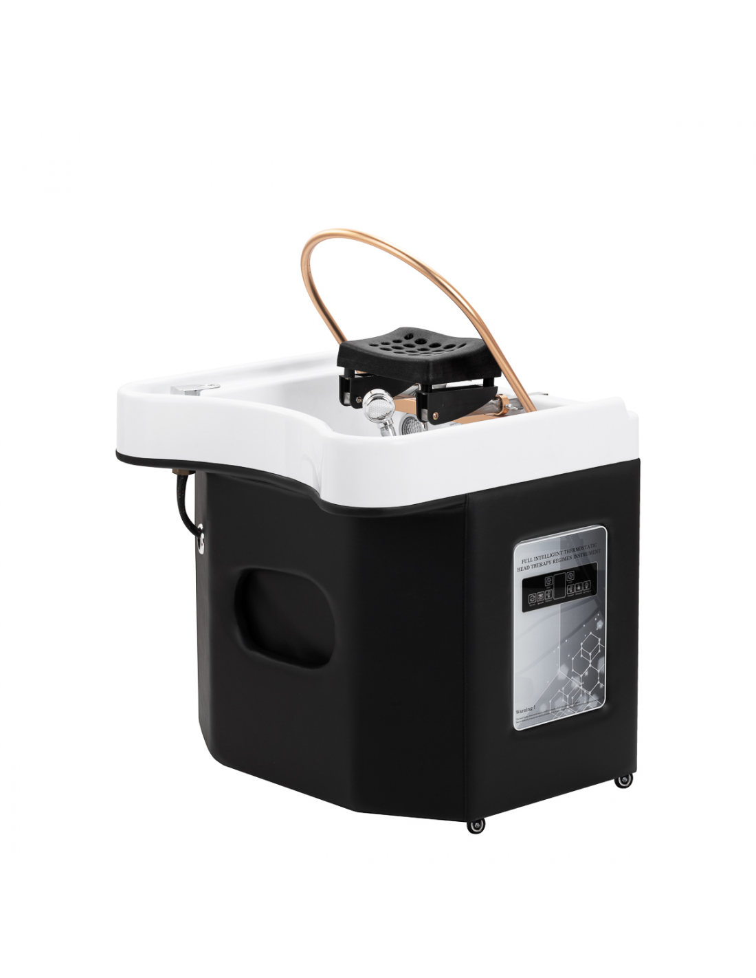 Złoty łuk z regulacją kąta nachylenia to innowacyjne rozwiązanie do zabiegów Waterfall Head SPA. Strumienie wody delikatnie masują skórę głowy, poprawiając krążenie, redukując napięcie i wspierając regenerację włosów. System zamkniętego obiegu pobiera wodę z misy i kieruje ją z powrotem, zapewniając ciągły, relaksujący masaż. Wodospad zapewnia dogłębne oczyszczenie skóry głowy oraz odprężenie, przynosząc ulgę w dolegliwościach takich jak bóle głowy czy sztywność karku. To połączenie technologii i relaksu, które wspiera zdrowie włosów i dobre samopoczucie.