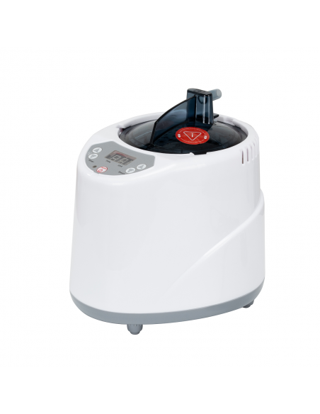 Intuicyjny panel dotykowy zapewnia pełną kontrolę nad parametrami zabiegu, zapewniając wygodę użytkowania i łatwość obsługi. Umożliwia regulację czasu pracy, temperatury oraz intensywności strumienia wody – do wyboru są trzy tryby: soft, comfort i strong. Za jego pomocą można również uruchomić funkcję światłoterapii, czyli podświetlenie misy, które tworzy relaksującą atmosferę i wspiera regenerację. Dodatkowym udogodnieniem jest pilot zdalnego sterowania, umożliwiający obsługę urządzenia do terapii parowej z dowolnego miejsca w gabinecie.