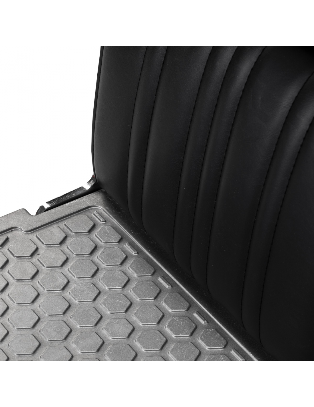 Komfortowe siedzisko zapewnia klientowi wygodę podczas różnorodnych usług. Odpowiednio wyprofilowane oparcie sprzyja przyjęciu stabilnej, wygodnej pozycji i zapewnia solidne podparcie pleców, co ma szczególne znaczenie przy dłuższych zabiegach. Mechanizm pełnego obrotu zwiększa swobodę ruchów i przekłada się na większą efektywność pracy. Tapicerowane podłokietniki umożliwiają prawidłowe ułożenie barków, zapobiegając unoszeniu ramion i garbieniu się klienta, co wyraźnie ułatwia barberowi wykonywanie precyzyjnych zabiegów.