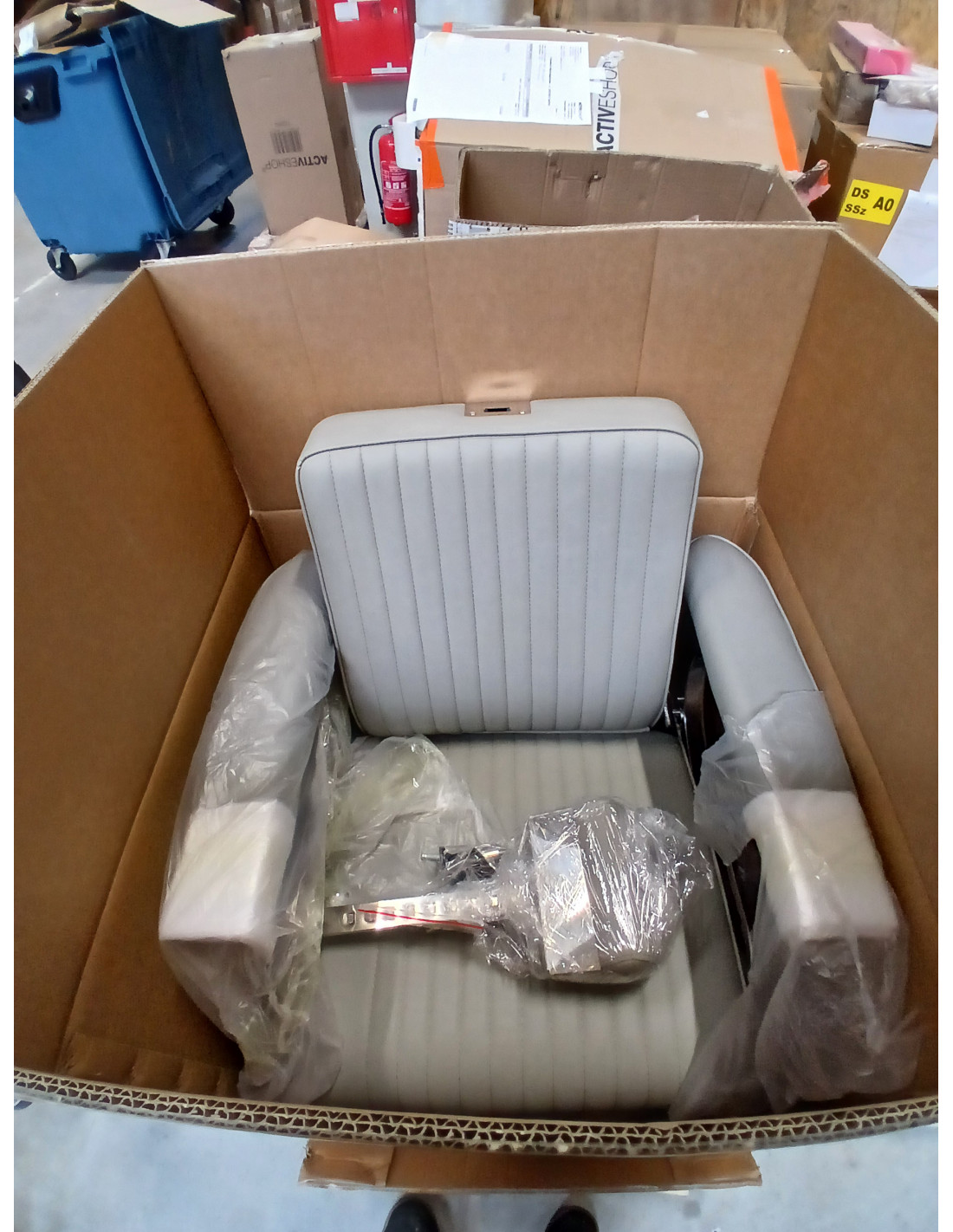 W zestawie: siedzisko, siłownik z podstawą, zagłówek.