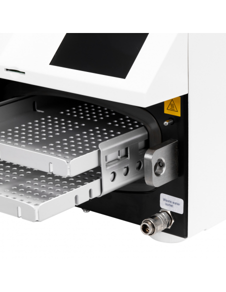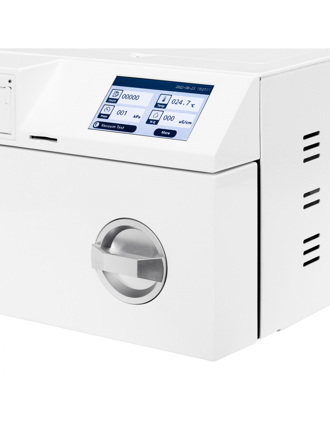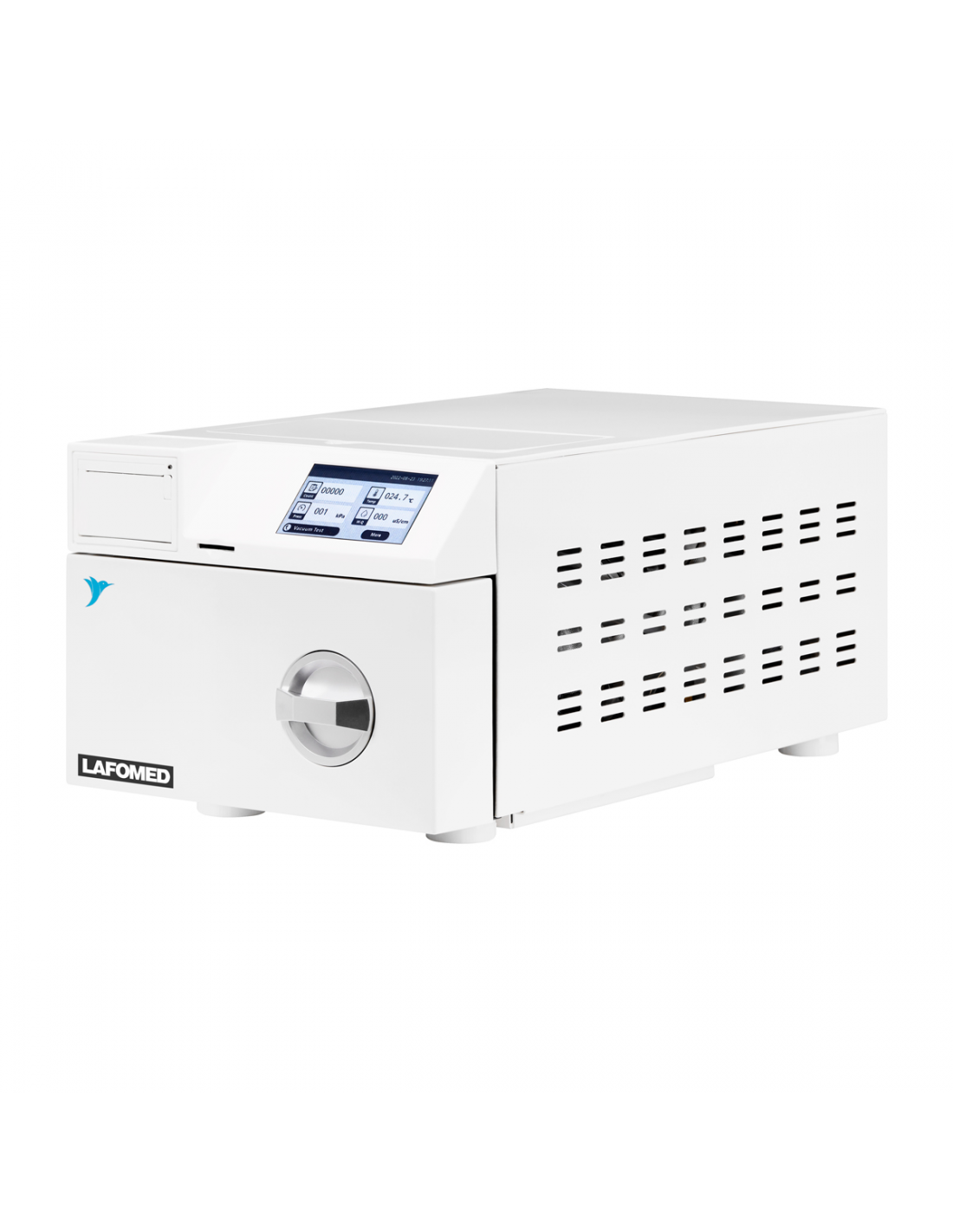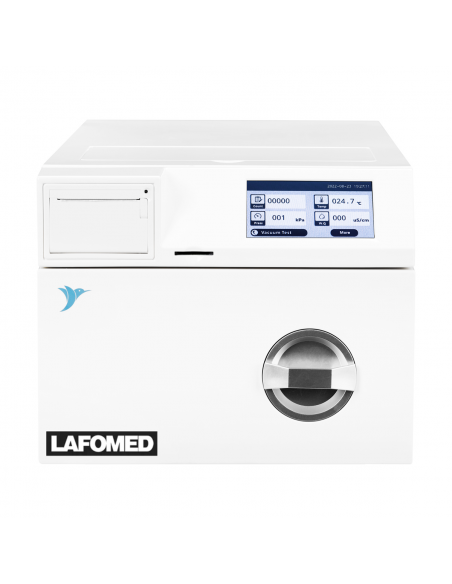 Jest to kompaktowe urządzenie z wbudowaną drukarką termiczną. Autoklaw posiada dotykowy wyświetlacz LCD oraz wejście na kartę pamięci SD, na której można zapisać wyniki przeprowadzonego cyklu. Posiada 7 całkowicie automatycznych programów; 4 programy sterylizacji, 2 programy testowe i program suszenia. Menu jest intuicyjne, a przyjazny interfejs jest w języku polskim. Przydatna okaże się również funkcja nagrzewania wstępnego i utrzymywania ciepła. Autoklaw Lafomed Touch 3L odznacza się dostępnością szybkich programów sterylizacji. Najkrótszy cykl dla sterylizacji narzędzi trwa 6 minut włącznie z suszeniem, a dla opakowanych zaledwie 8 minut. Urządzenie posiada wbudowany zbiornik na czystą (destylowaną) wodę, która służy do sterylizacji, jak i również zbornik na zużytą wodę. System autodiagnozy skutecznie uchroni przez uszkodzeniem i pozwoli zachować trwałość urządzenia. Autoklaw spełnia wszelkie wymogi Sanepidu, a po zakupie tego modelu nie ma konieczności zgłaszania tego w Urzędzie Dozoru Technicznego.