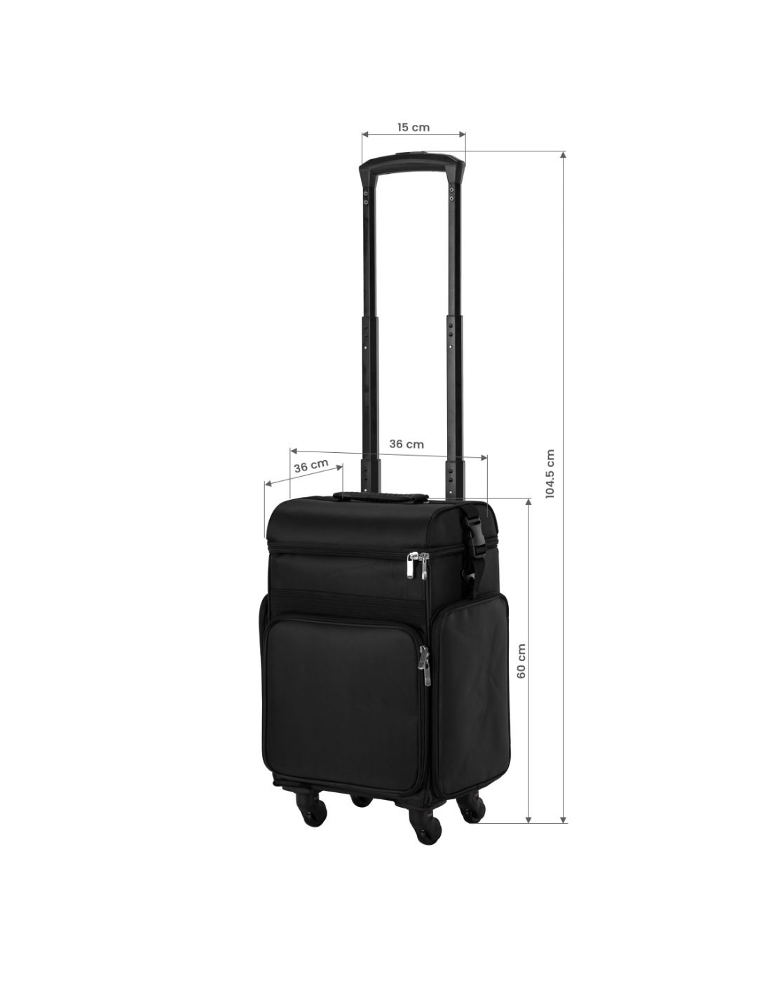 Kufer kosmetyczny Look 328 na kółkach to idealne rozwiązanie dla profesjonalnych kosmetyczek, fryzjerek i wizażystek, które potrzebują mobilnego i funkcjonalnego narzędzia do pracy. Praktyczny kuferek wyposażony w wygodną, rozsuwaną rączkę oraz łatwe w demontażu kółka jest łatwy do przemieszczania. Przestronne wnętrze pozwala na szybką segregację i przechowywanie wielu akcesoriów kosmetycznych, dzięki czemu wszystkie niezbędne przedmioty znajdują swoje stałe miejsce.
