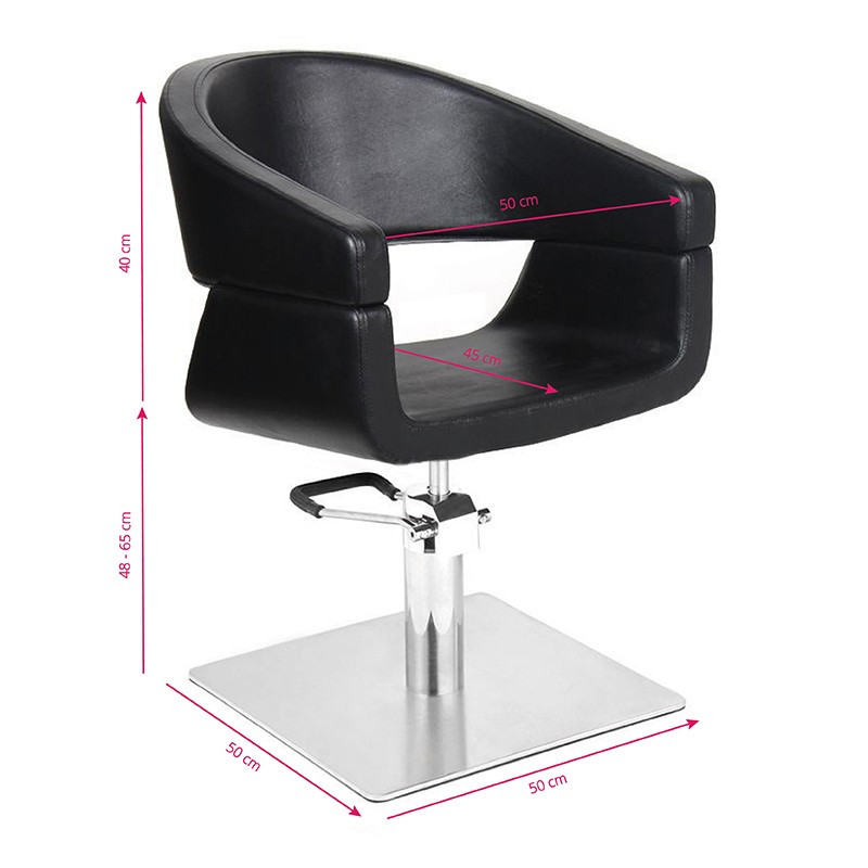 Nowoczesny fotel fryzjerski o wyjątkowym designie. Bardzo wygodny, idealnie pasujący do nowoczesnych salonów. Specjalnie wyprofilowany, by zapewnić klientowi wygodną pozycję podczas zabiegu. Regulowany w płaszczyźnie pionowej. Bardzo stabilny i solidny. Obicie z wysokiej jakości ekoskóry. Kolor czarny.