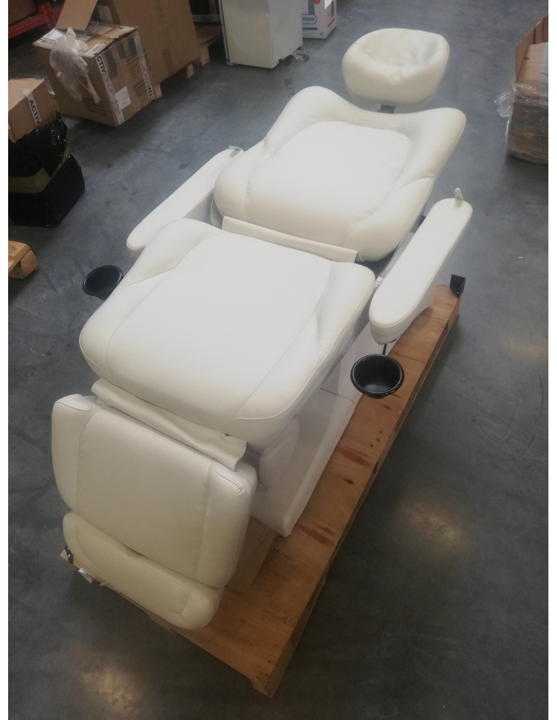 Nowoczesny fotel kosmetyczny regulowany elektrycznie, zapewniający komfort podczas zabiegu nie tylko pacjentom, ale i osobom wykonującym zabieg. Ciche silniki elektryczne umożliwiające szybką i wygodną regulację fotela. Fotele mają wyprofilowane i bardzo wygodne siedzisko, są wytrzymałe oraz bardzo stabilne. Dzięki podnoszonym podłokietnikom łatwiej klientowi zając miejsce na fotelu. Szeroki zakres regulacji góra-dół pozwalający na indywidualne dostosowanie wysokości fotela do wzrostu osoby wykonującej zabieg oraz radzaju zabiegu.