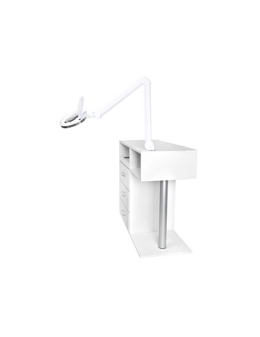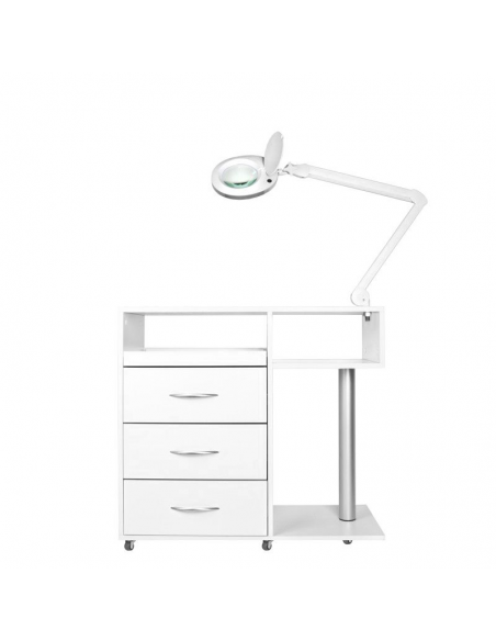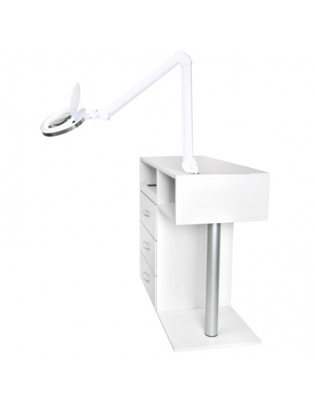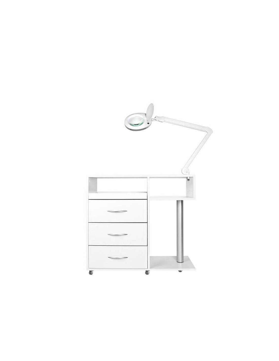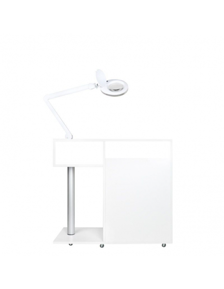 Profesjonalny unit podologiczny, solidnie wykonany z szufladami wraz ze specjalną szufladą na sterylizator UV-C oraz półką na frezarkę. Dopełnieniem całości jest uchwyt na lampę lupę TUBE a metalowo-gumowe kółka gwarantują mobilność. Pomocnik został stworzony aby ułatwić pracę osobie wykonującej zabieg.