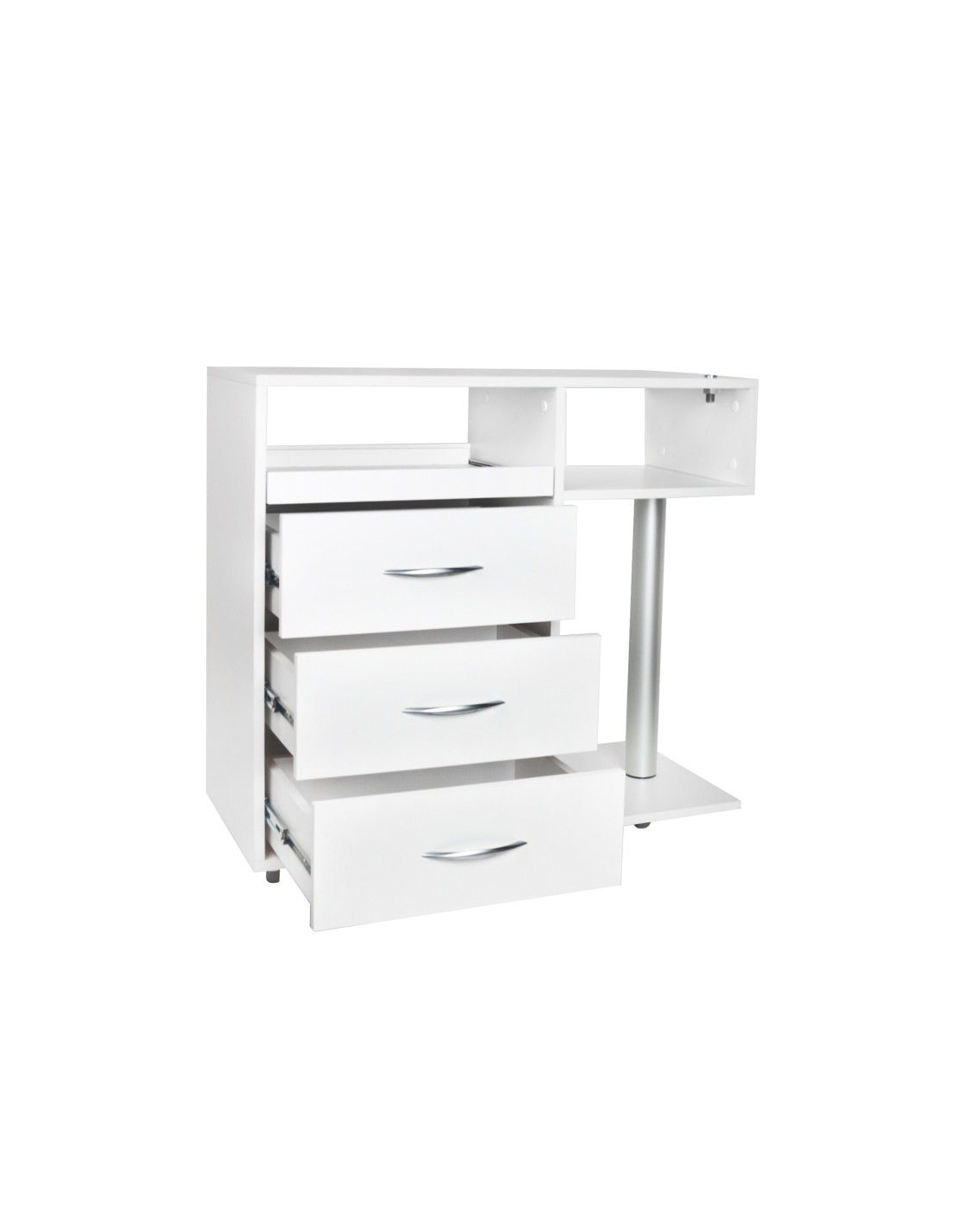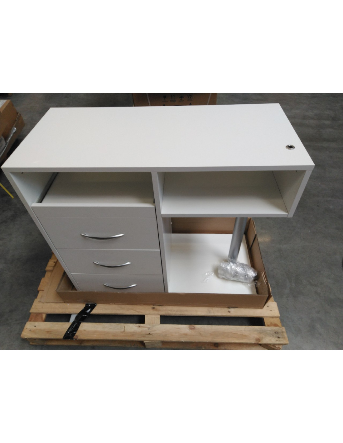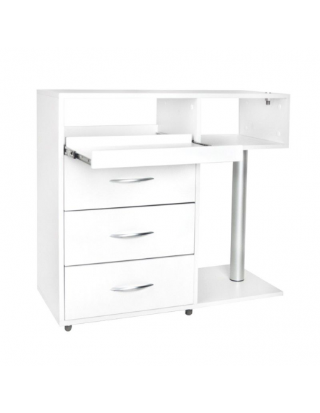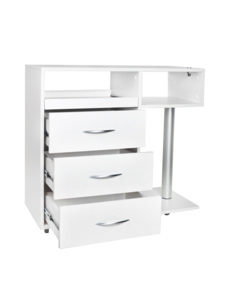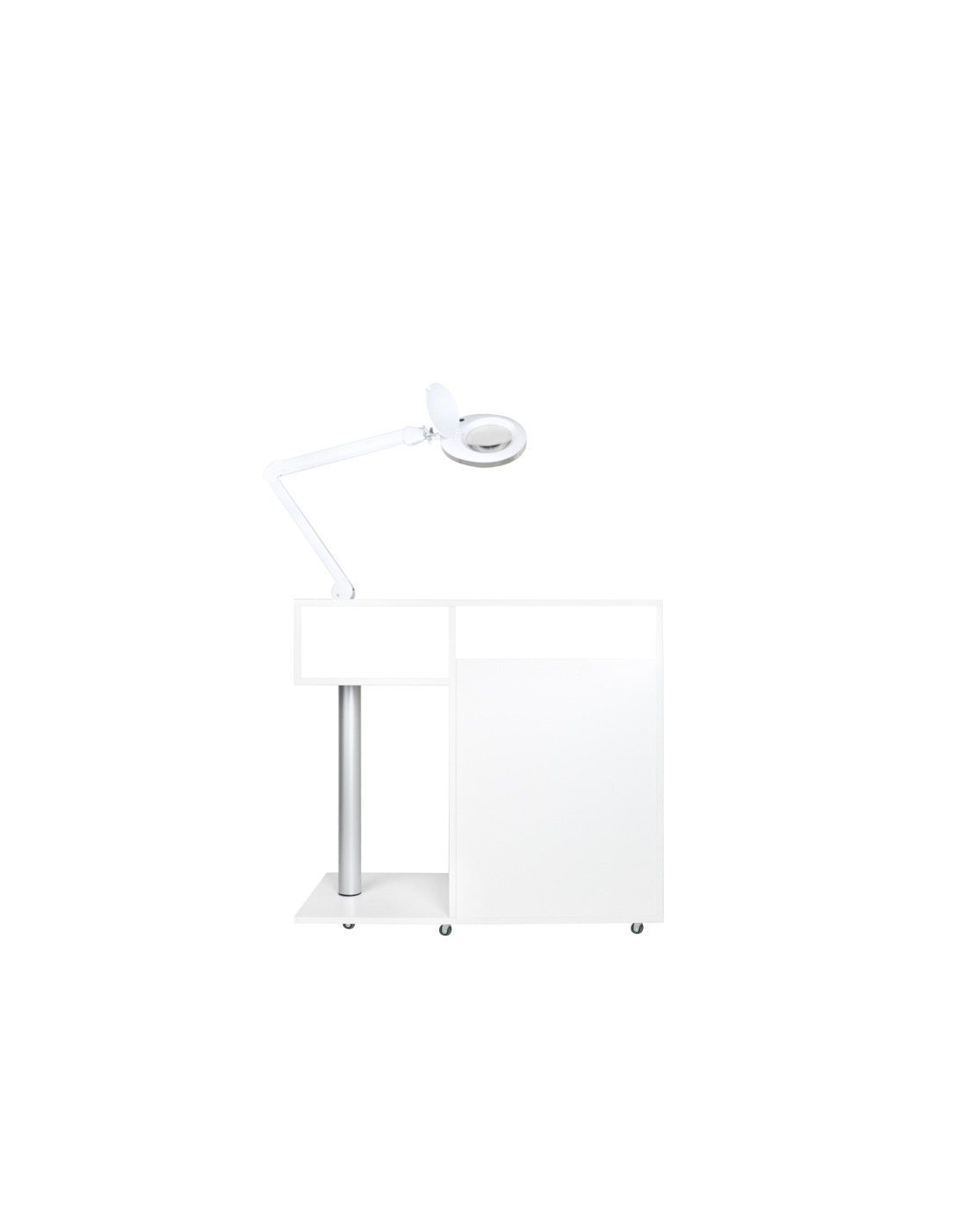 Profesjonalny unit podologiczny, solidnie wykonany z szufladami wraz ze specjalną szufladą na sterylizator UV-C oraz półką na frezarkę. Dopełnieniem całości jest uchwyt na lampę lupę TUBE a metalowo-gumowe kółka gwarantują mobilność. Pomocnik został stworzony aby ułatwić pracę osobie wykonującej zabieg.