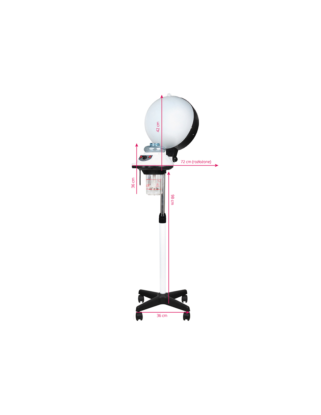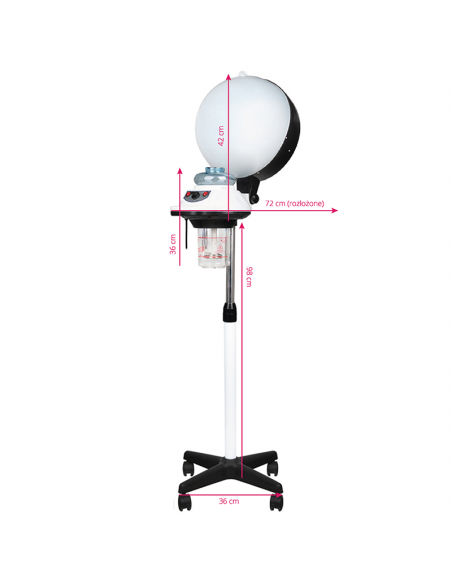 Stojący nawilżacz fryzjerski, który skraca czas wykonywanych zabiegów chemicznych i wspomaga działanie preparatów pielęgnacyjnych.