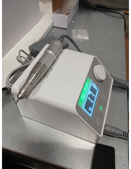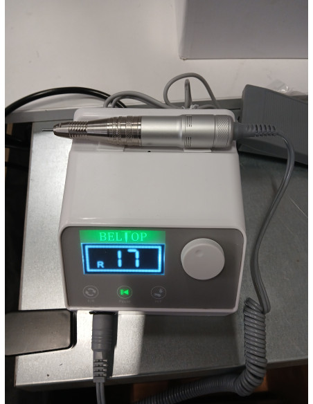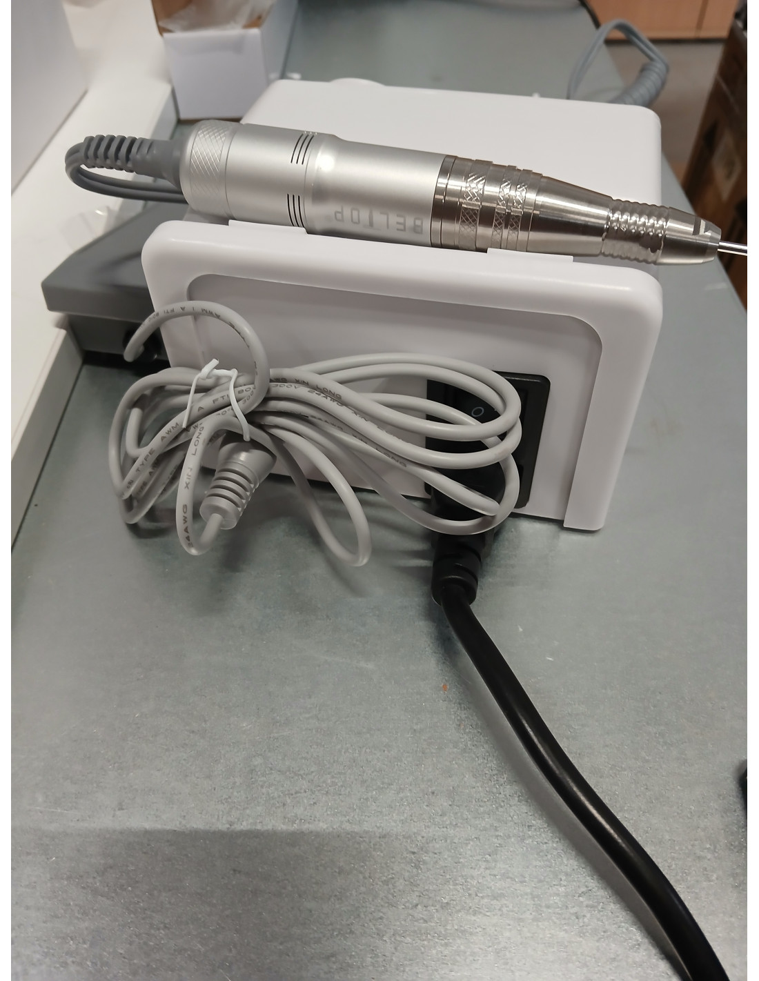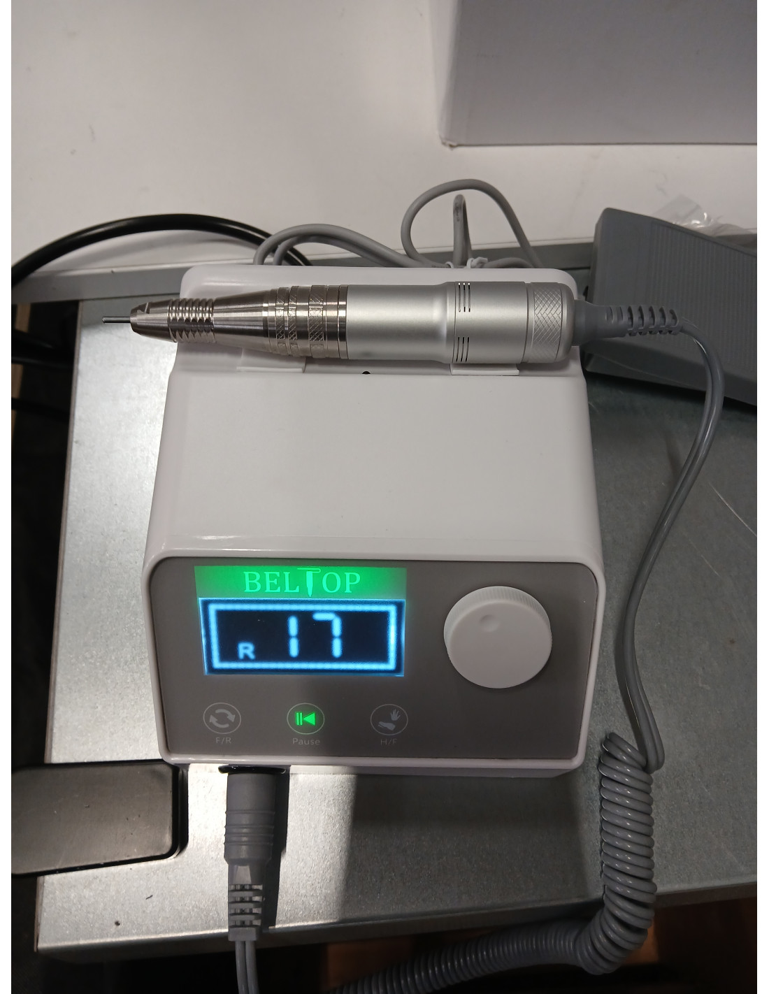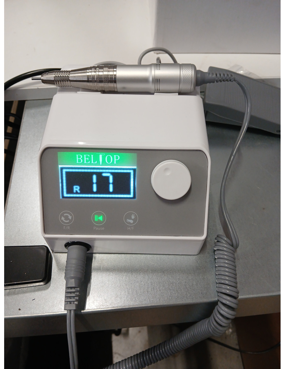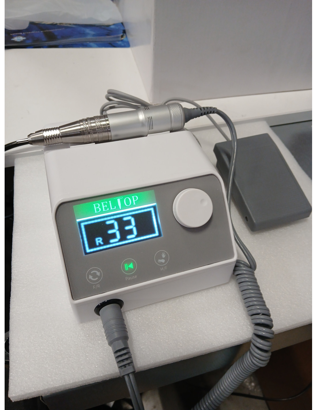 Frezarka BM-218 to proste w obsłudze urządzenie do wykonywanie manicure i pedicure. Urządzenie posiada czytelny wyświetlacz, dzięki czemu łatwiej ustawić parametry pracy. W górnej części frezarka wyposażona jest uchwyt spoczynkowy z czujnikiem ruchu. Kiedy głowica zostanie odłożona automatycznie się wyłączy a frez przestanie się obracać. Głowica posiada silnik szczotkowy. Dodatkowe wyposażenie to napęd nożny którym można kontrolować prędkość obrotową głowicy.